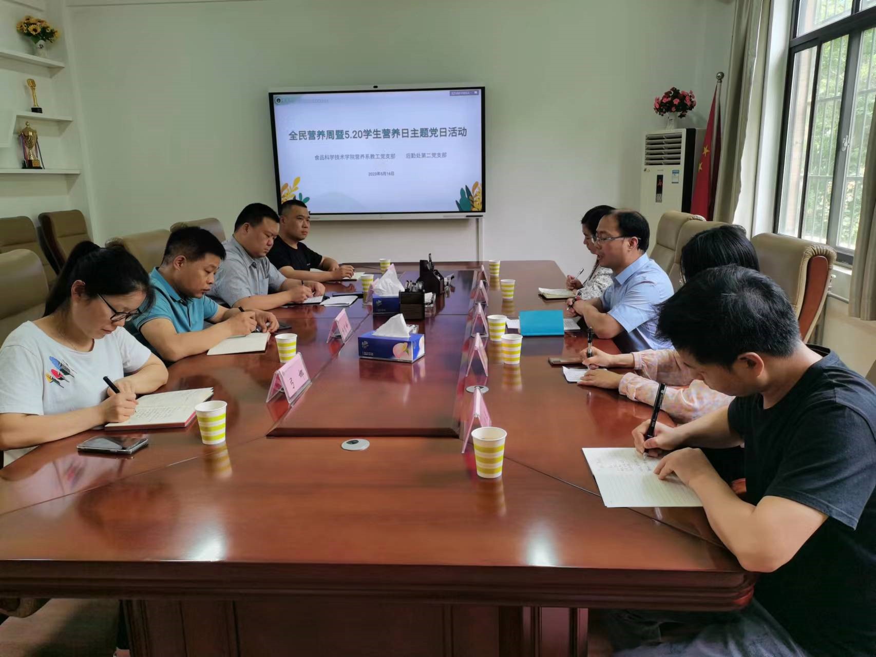 高晓平介绍了此行目的,一是向对口兄弟支部学习党建经验;二是向兄弟支部推介营养系教工党支部及食品营养与健康系,加深互相了解;三是经过前期对学生饮食习惯、饮食结构以及对饮食窗口建议开展了调研,现将调研结果反馈给伙食科;四是探索两个支部在食品营养与健康领域合作可能性,为农大高质量的餐饮品牌增光添彩。同时,交流了本周五准备在文化路校区开展2023全民营养周和5.20学生营养日活动暨第一届澳门银河App 营养知识健康行计划基本情况。