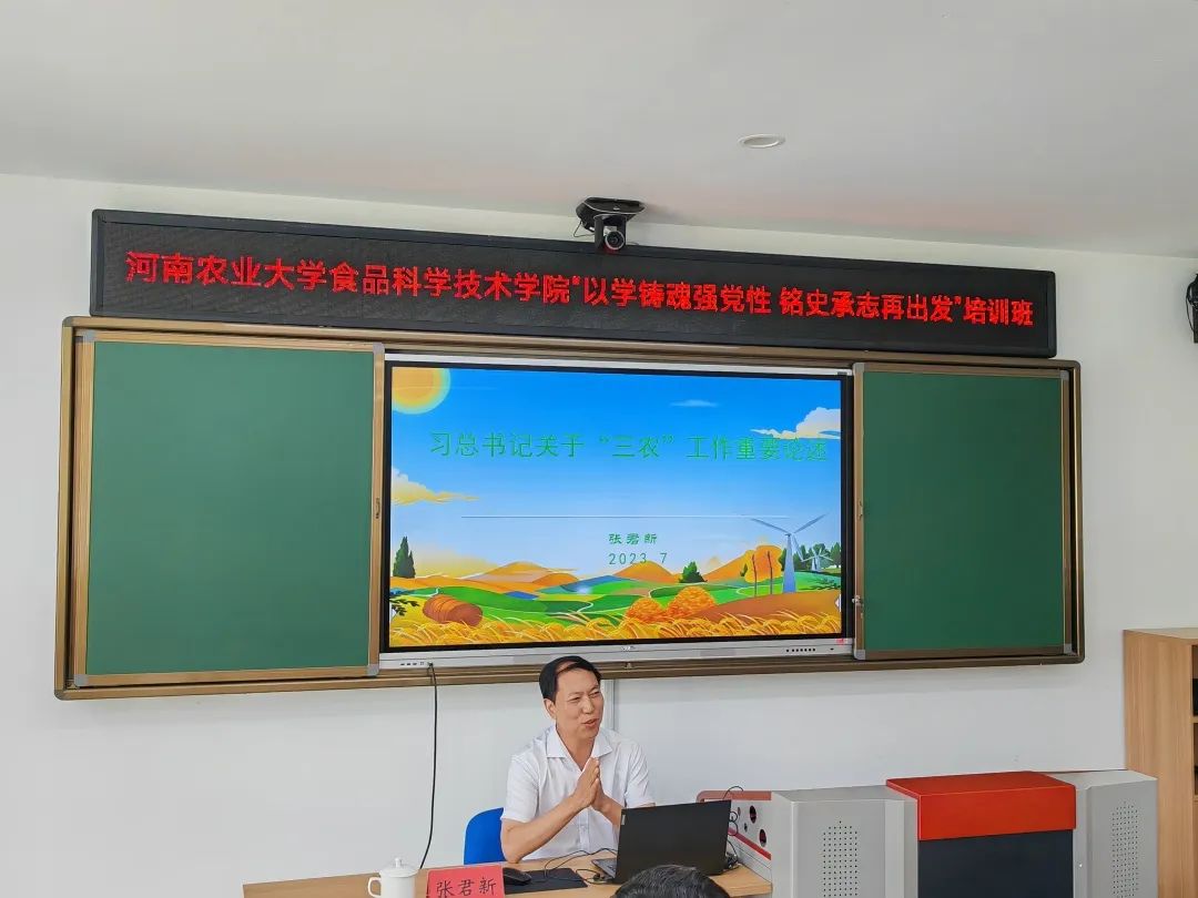 党委书记张君新教授作题为《习总书记关于“三农”工作重要论述》的报告,在报告中他从全面学习理解上下功夫,在全面把握上下功夫,全面落实上下功夫三个方面进行讲解。讲解既有习近平总书记关于“三农”工作的重要论述,也结合实际情况,从中华民族发展史上深刻学习理解“三农”,从“胸怀两个大局”中深刻理解“三农”,从中国式现代化上牢牢把握“三农”工作重要地位。在落实过程中他从如何全面实现“三农”的方法上进行阐述。整篇报告内容丰富、详实,既有理论基础,又有具体实例,为澳门银河App