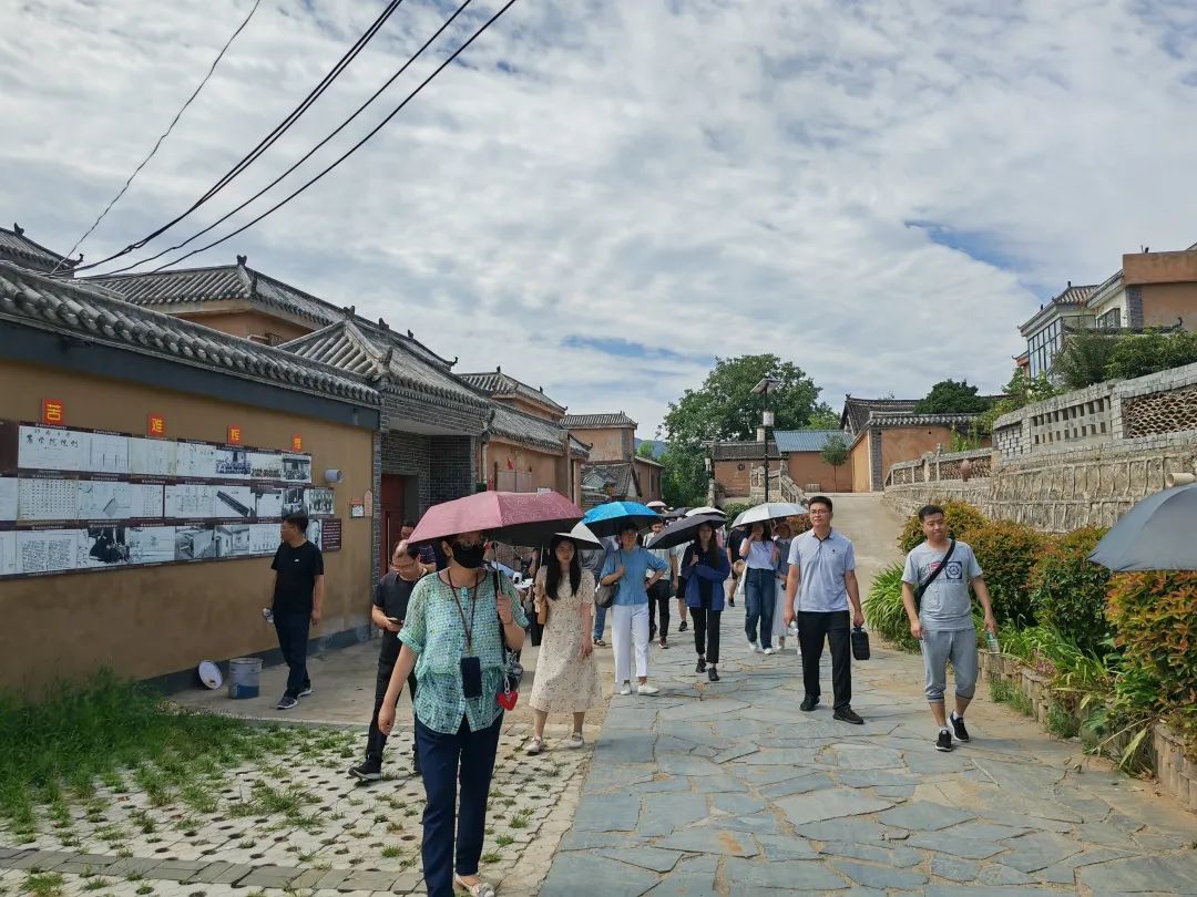 随后,到伊源康养谷联合党委参观,考察村集体经济建设情况,了解到当地五个村子联合发展民宿产业实现脱贫致富,探索农村产业发展新路子,老师们纷纷对此表示赞赏。
