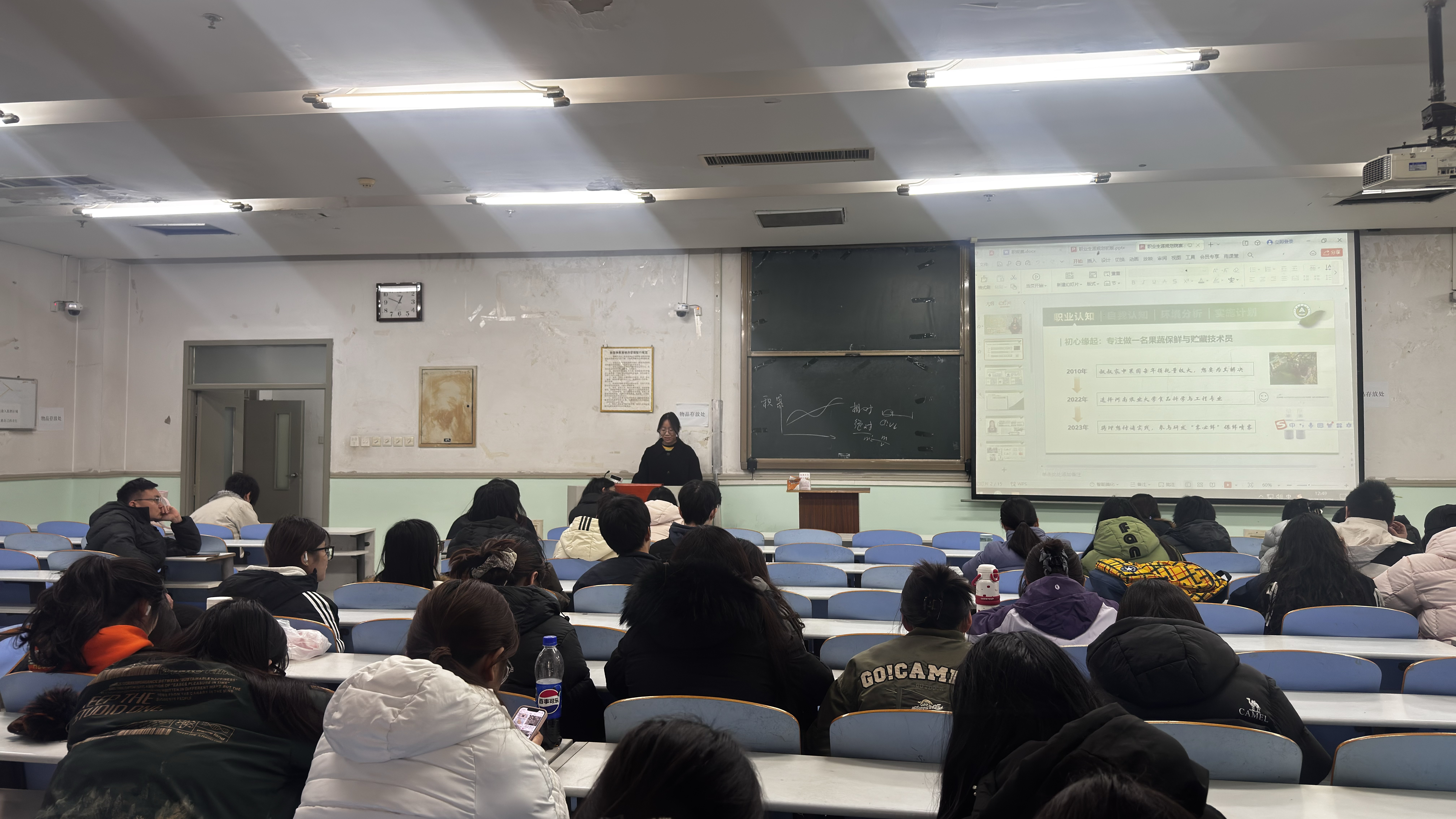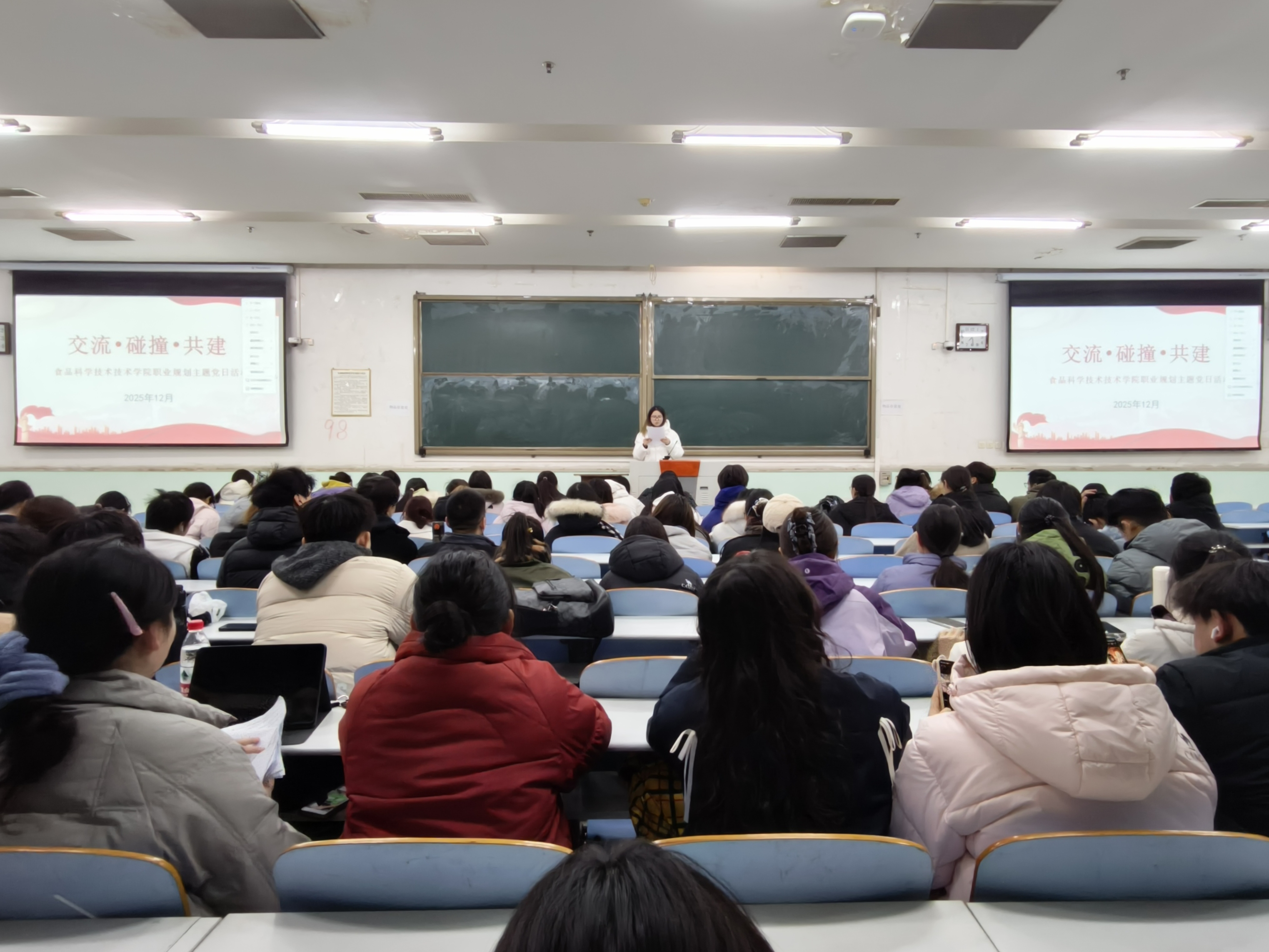 与国家发展相结合,阐述了食品行业的未来发展趋势并对职业发展中的痛点给出解决方案。营养专业学生党支部党员马静怡聚焦“职业规划大赛”,从赛道选择、PPT逻辑架构到路演表达技巧逐一拆解,帮助同学们把职业蓝图“讲清、讲透、讲出彩”。营养专业学生党支部党员党员周凯轩围绕研究生推免全流程,逐一分享推免材料打磨、面试问答、志愿填报等关键节点,为意向升学的同学送上“避坑指南”。