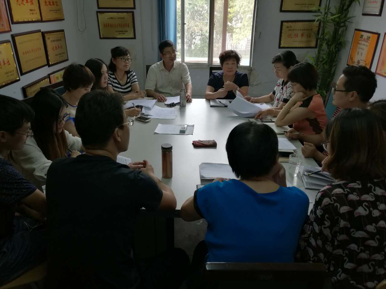 在文化路校区七号楼222会议室举行集中学习会议,院党委书记杨喜洲、院长赵改名、院党委副书记魏玮、副院长蒋玲玲、副院长黄现青及各系主任、院团委负责老师出席会会。
