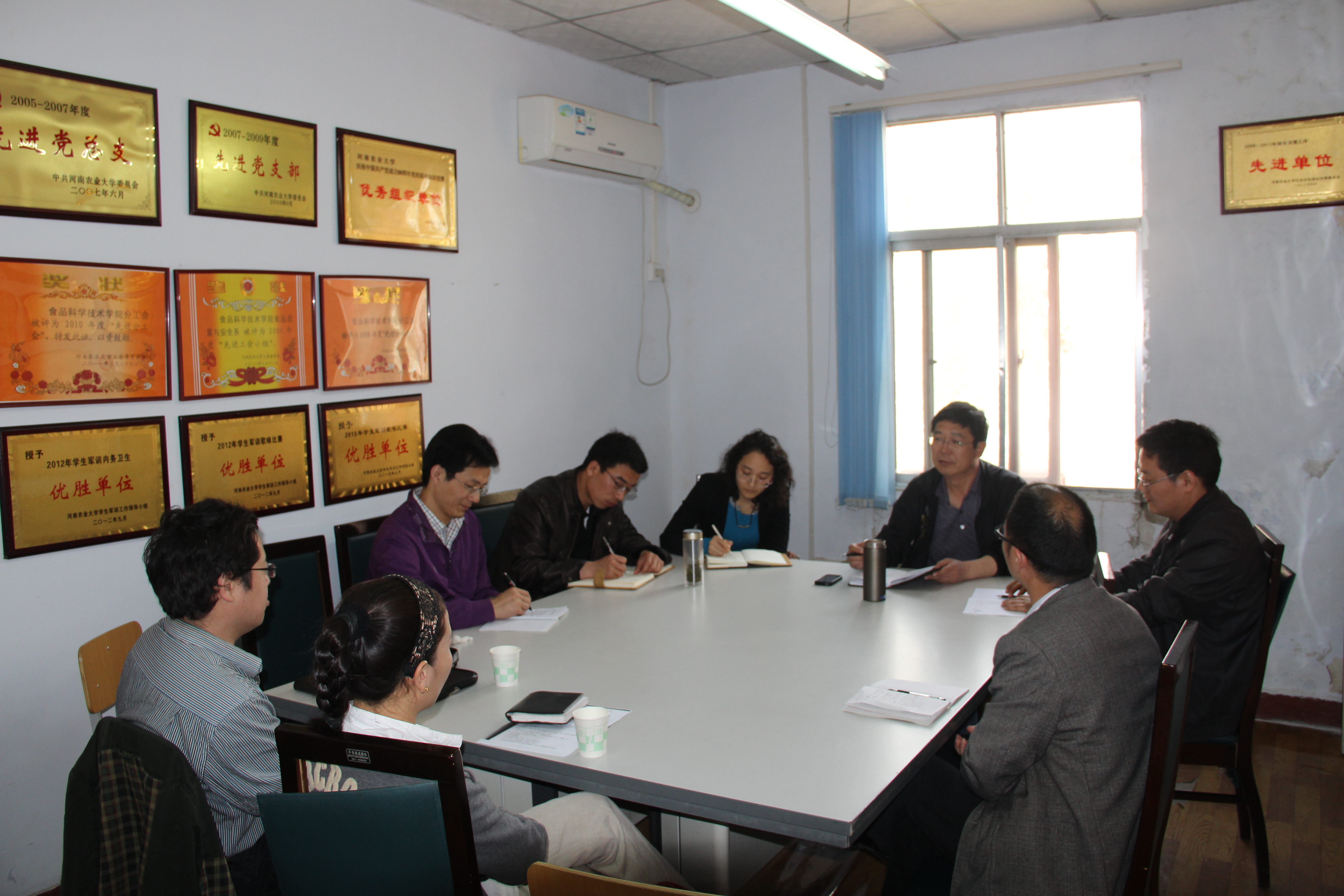 院党委书记杨喜洲和院长赵改名分别与食品科学与工程系、食品质量与安全系、食品营养与化学系、实验教学中心和院办公室等部门的系室主任与教师代表进行座谈。院长赵改名和院党委副书记孙淑娥与研究生代表分别进行座谈。院党委副书记孙淑娥和团委老师与大一、大四和学生干部分别进行座谈。院团委还专门制作了调查问卷,针对不同年级、不同专业的学生进行了有针对性的调研和了解。