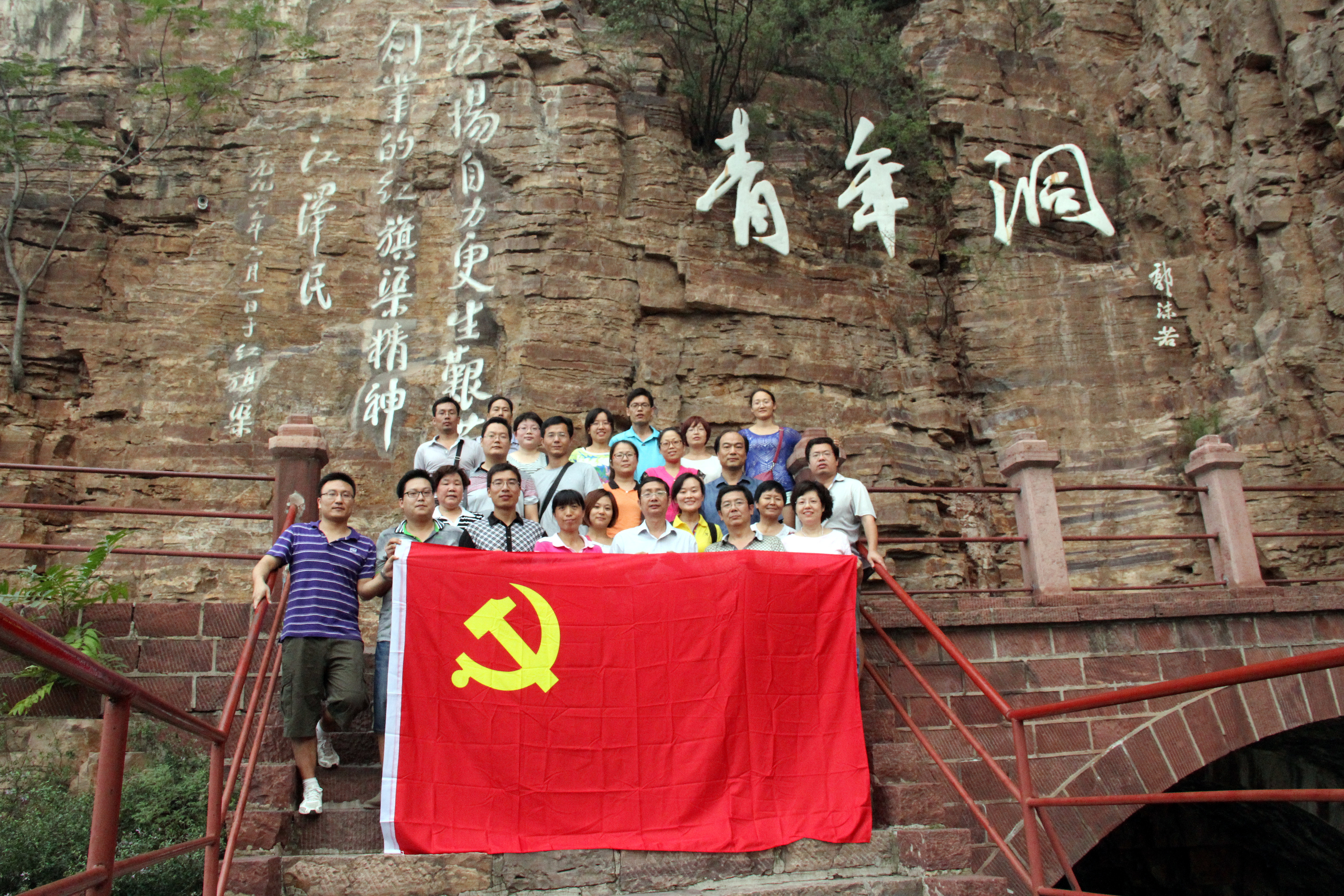 为扎实做好党的群众路线教育实践活动,创新学习形式,增强学习效果,开学前夕,澳门银河App 全体党员前往河南省林州市红旗渠教育基地,开展了“学习艰苦奋斗精神,促进事业健康发展”主题党日活动。现场体验红旗渠建设者的艰辛,接受红旗渠精神的洗礼。