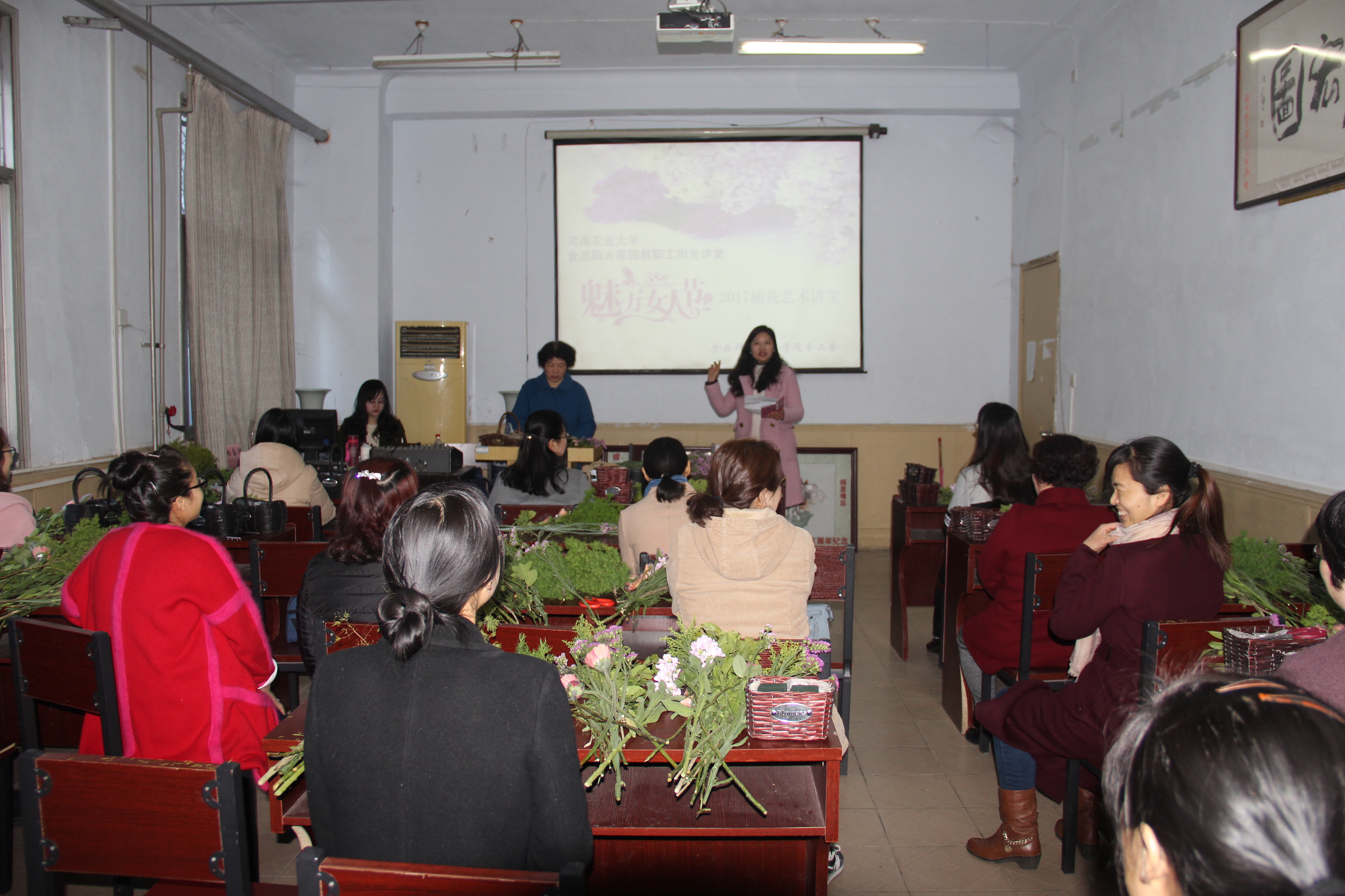 三月,校园里的玉兰花又一次绽放在枝头,节日是让幸福开花的理由。三月,春意浓浓的日子;三月,属于女人的季节。为了让全院女教工度过一个充实愉快、富有意义的三八节,3月7日上午,澳门银河App 特在一号楼报告厅举办“魅力女人节”之插花艺术活动,特邀中国植物学会兰花分会理事、河南省花卉协会常务理事、河南省插花花艺协会秘书长武荣花作插花知识讲座。本次活动由澳门银河App 党委副书记兼工会主席魏玮主持,澳门银河App 全体女教工及学生代表共同参加。