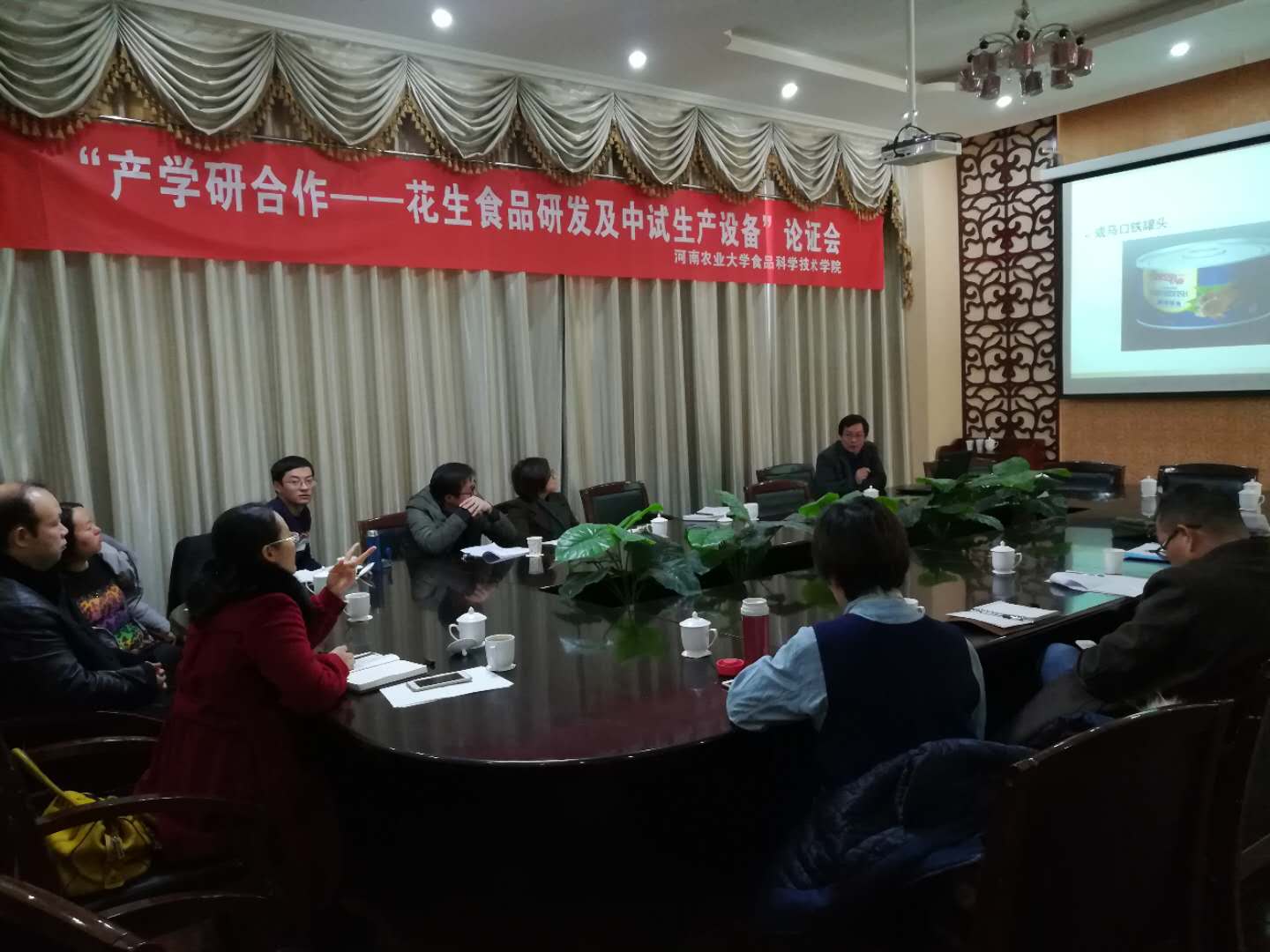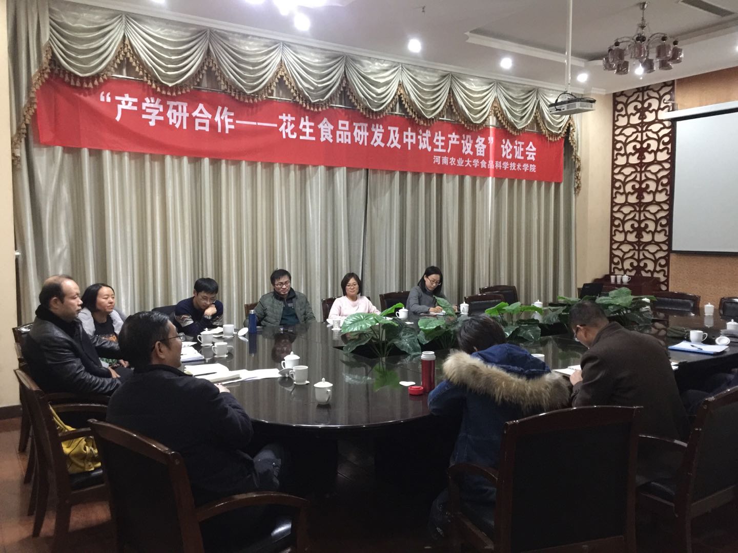 2017年12月10日上午,澳门银河App “花生食品研发”项目组召开“产学研合作——花生食品研发及中试生产设备论证会”。院党委书记杨喜洲、项目负责人王娜副教授、特邀专家张剑老师、课题负责人等参加会议。