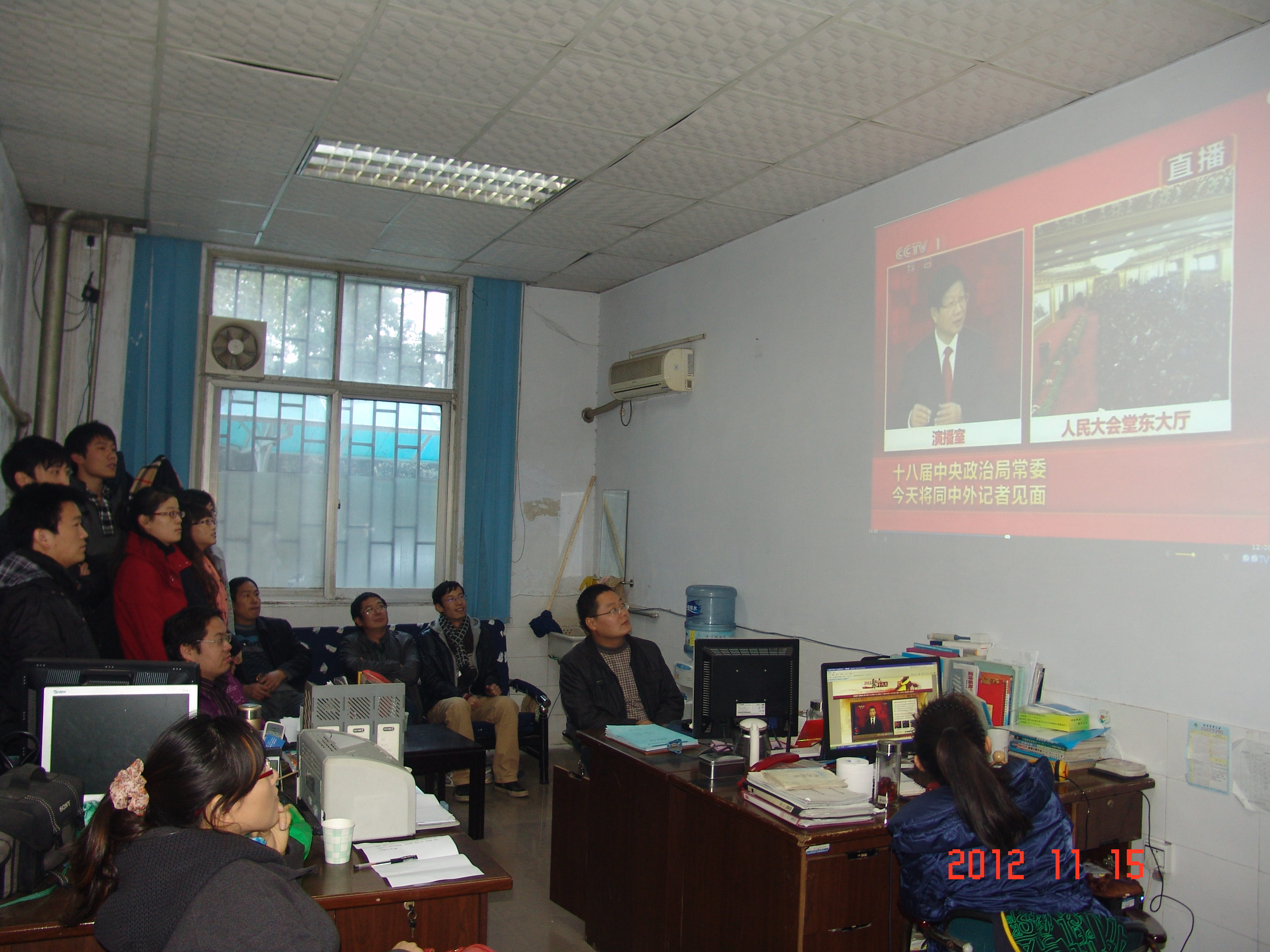 11月15日上午11点,澳门银河App 党委组织教职工生代表集体收看了新一届中央领导集体与中外记者见面会的现场直播,并在观看后开展了热烈的学习讨论。