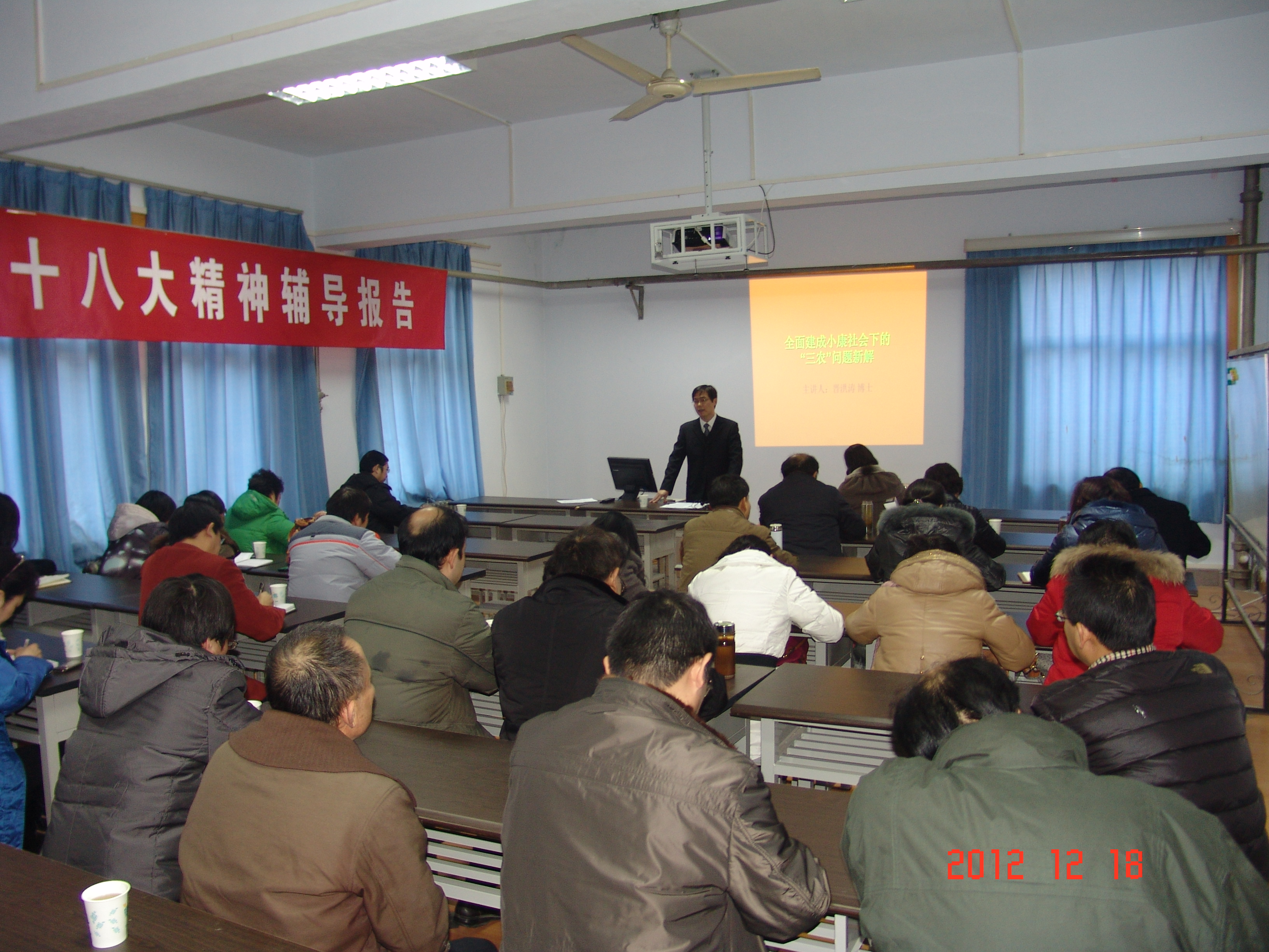 12月18日下午,食品科学技术澳门银河App 与园艺澳门银河App 联合举办学习贯彻党的十八大精神专题报告会。校宣讲团晋洪涛博士为两院教职工作了《全面建成小康社会下的“三农”问题新解》的报告。两院领导和教师60余人参加了报告会。