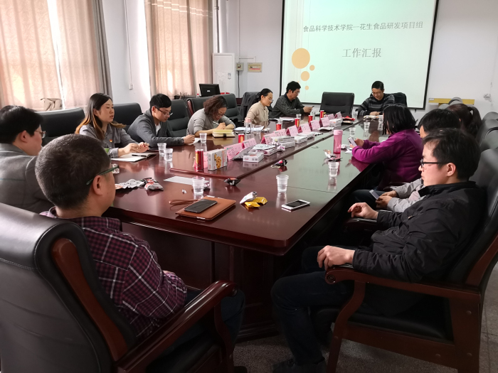 花生食品研发项目是澳门银河App 首次以校企合作创新项目形式开展的研究项目。澳门银河App 高度重视,精心组织,与合作企业正阳新地花生集团紧密配合,在短短的一年时间里就建起了花生休闲食品和花生饮料两条生产线,研发新产品20余个。会上,项目组成员宋晓燕、詹丽娟、赵秋艳和张建威等老师分享了一年来的工作经验和收获。