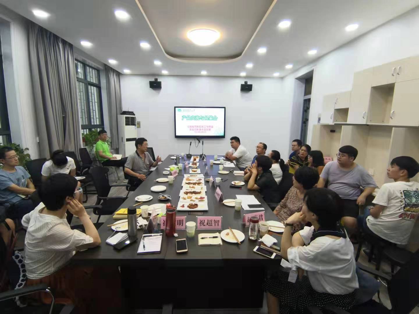 报告会后,郝红涛总监参加了河南省肉制品加工与质量安全控制重点实验室的产品交流与品鉴会,产品包括实验室研发的新产品和正大食品的调理狮子头、小酥肉、红烧肉等,其中正大食品的红烧肉是2018年博鳌亚洲论坛指定食材,备受好评。在交流讨论阶段,郝总监与老师、同学们关于新产品开发、肉类企业发展现状、行业现状及企业管理等进行了激烈讨论,并围绕实验室现有产品的优缺点及改进措施提出宝贵建议,老师和同学们都获益匪浅。研究生们对郝红涛提出的产品开发中的关键控制点最感兴趣,大家也认为实践出真知,要在实践过程中不断积累,真正做到“产学研”结合,把产品做成大众喜爱、能够保持良好风味和口感的可工业化生产的产品。