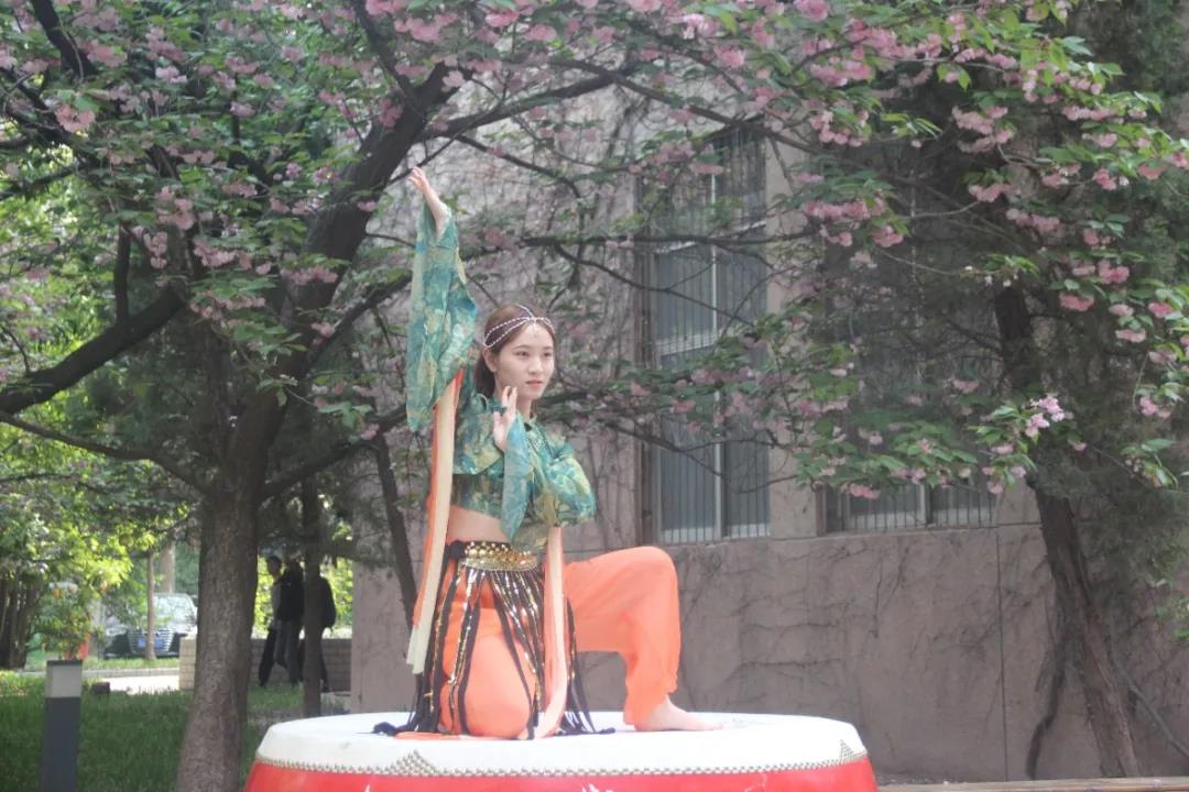 樱花文化节活动在优美的敦煌舞中拉开序幕,樱花飞舞间,美人飘然而过,醉了春天。传统文化与烂漫樱花的融合,将碰撞出不一样的火花。在樱花活动中,樱花小道旁展出了一系列樱花绘画、书法、摄影作品以及对樱花知识的介绍,同学们可以从各个角度欣赏草长莺飞,飞樱满园。除此之外,同学们也在现场绘画樱花作品,书写樱花诗句,品古人赏樱之乐。活动现场还有“食遇有你”品樱花甜品活动,同学们在樱花小道旁品尝樱花甜品,从味觉感受春天的气息,樱花的甜蜜。一系列的有趣活动,让同学们在赏樱花的同时对党寄语、告白,表达对中国共产党百年华诞的美好祝福。