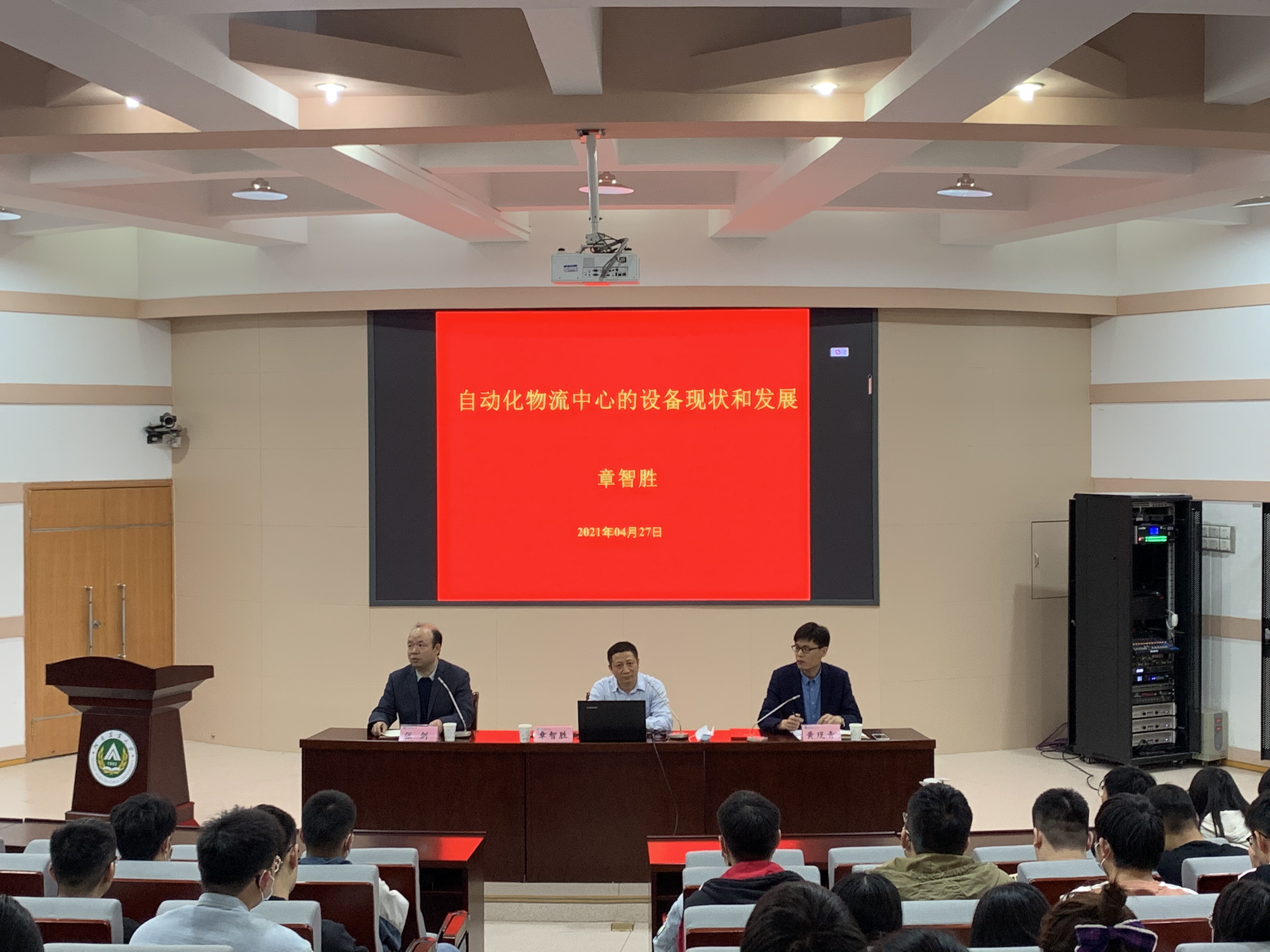 师生做了精彩的报告会。章智胜工程师从目前传统平库的局限和劣势、自动化物流中心的特点、国内外自动化物流中心的发展状况及创新方面等做了精彩的讲解和介绍。同时结合自己设计的项目工程等向师生做了精彩的展示,老师和同学看到如此庞大的工程都感到了震惊,同时全场报以热烈的掌声。