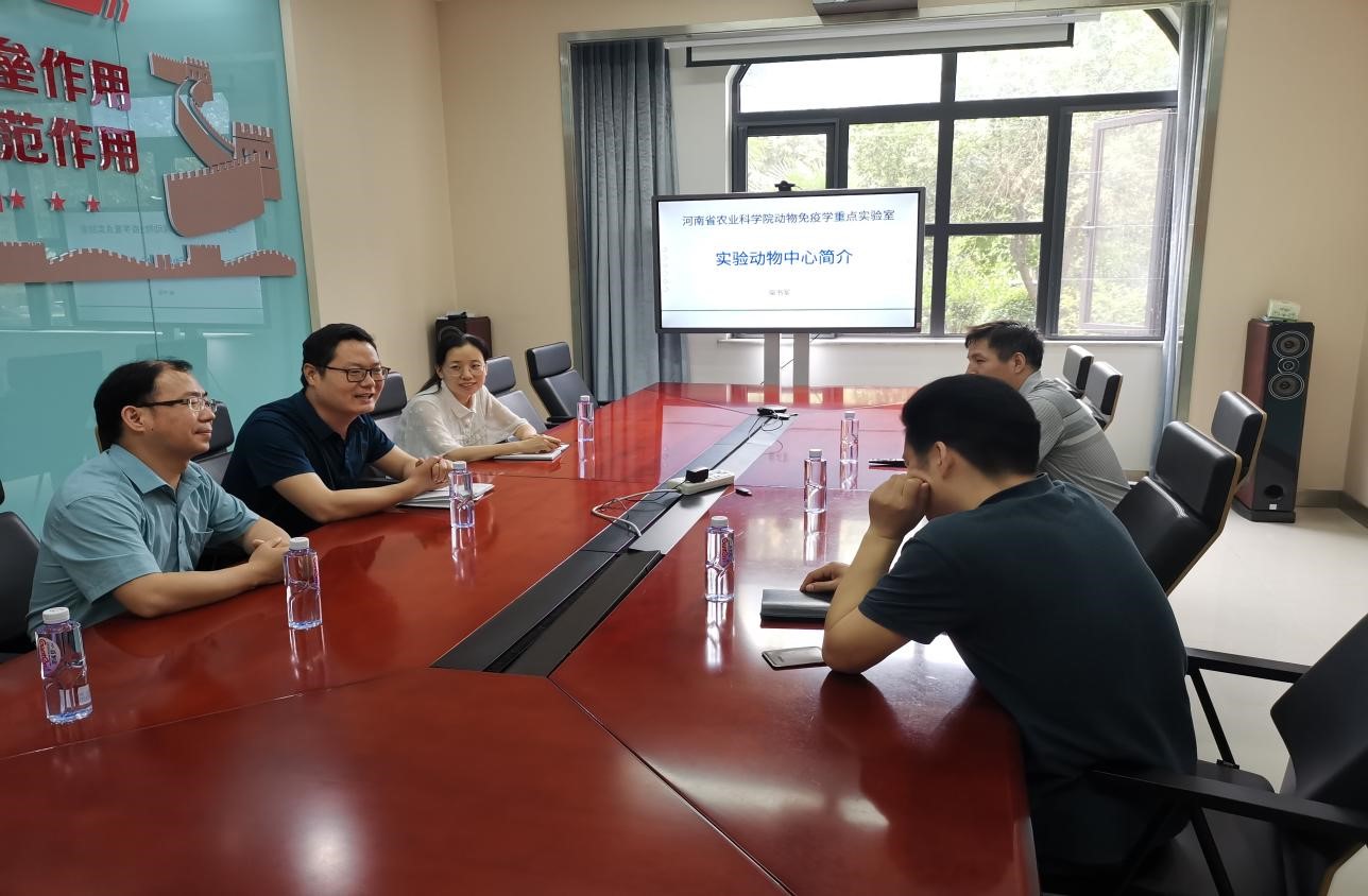 中心实验室功能,更好的服务食品营养与健康新专业建设,2021年6月9日上午,中心实验室乔明武主任、吴文江老师,食品营养系高晓平主任、李宁副主任一行4人赴河南省动物免疫学重点实验室进行了学习交流。