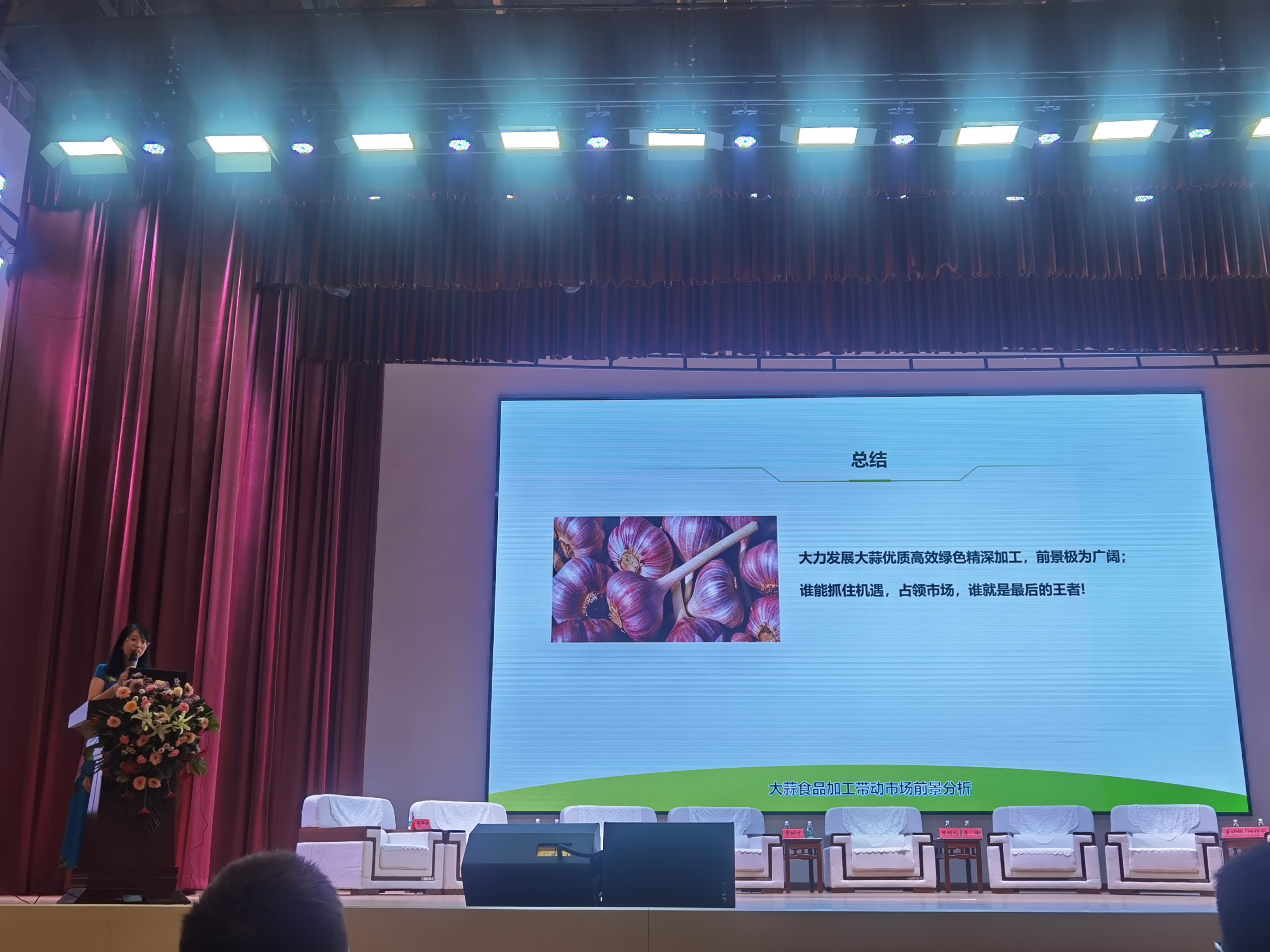 教师李瑜受邀在大会上作“大蒜食品加工带动市场前景分析”的主题报告,并在“产业发展形势研讨会”沙龙互动环节和参会嘉宾热烈讨论大蒜未来的产业化发展方向,指出应进一步推动大蒜产业朝着规模化、标准化、绿色化、国际化的方向发展,进一步延长大蒜精深加工产业化链条,为推动全国大蒜产业的快速健康发展、推动县域经济发展与乡村振兴紧密结合做出贡献。中国蔬菜流通协会会长戴中久、副会长陈明均,开封市政府副市长王玲等领导参加了会议,清华大学中国农业研究院副院长王红宇、国务院发展研究中心市场经济研究所原所长任兴洲和中国农业大学食品科学与营养工程澳门银河App