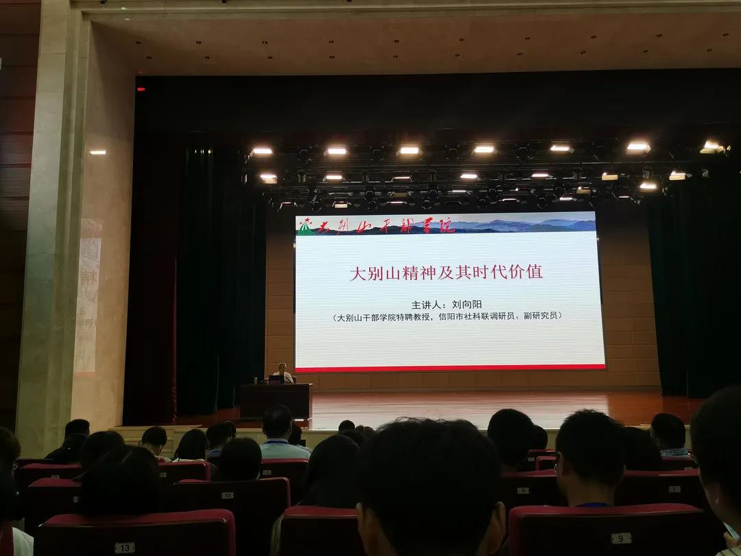 第一报告厅,聆听了大别山精神及其时代价值报告会,报告会由信阳市社科联刘向阳副研究员主讲。他以历史为线,阐述了大别山精神产生的过程,充分阐释了大别山精神的内涵,用具体事例和具体数字展现了可歌可泣的英雄的大别山军民铸就的大别山精神。