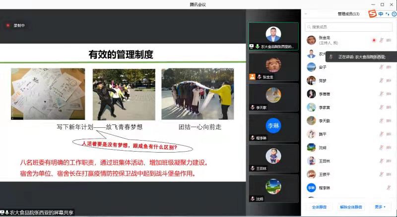 安艳霞、张西亚、沈玥及路平结合自身担任班主任经历,从疫情期间新生入学注意事项、班级制度建设、班级管理、重点学生关注、奖助学贷评选及突发事件处理的方式方法等方面,结合实例做了详细的经验分享。