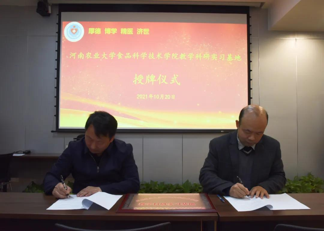 随后,张剑副院长和简立国副院长代表双方签订了合作协议,并进行了教学科研基地的授牌。