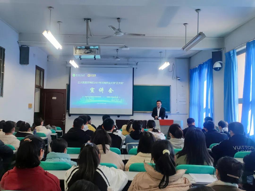 签约仪式前,正大集团有关负责人分三个会场面向全体21级同学开展宣讲会,详细介绍了正大集团的历史、产业链等基本情况和“正大班”的培养模式、师资建设等内容。互动答疑环节,澳门银河App