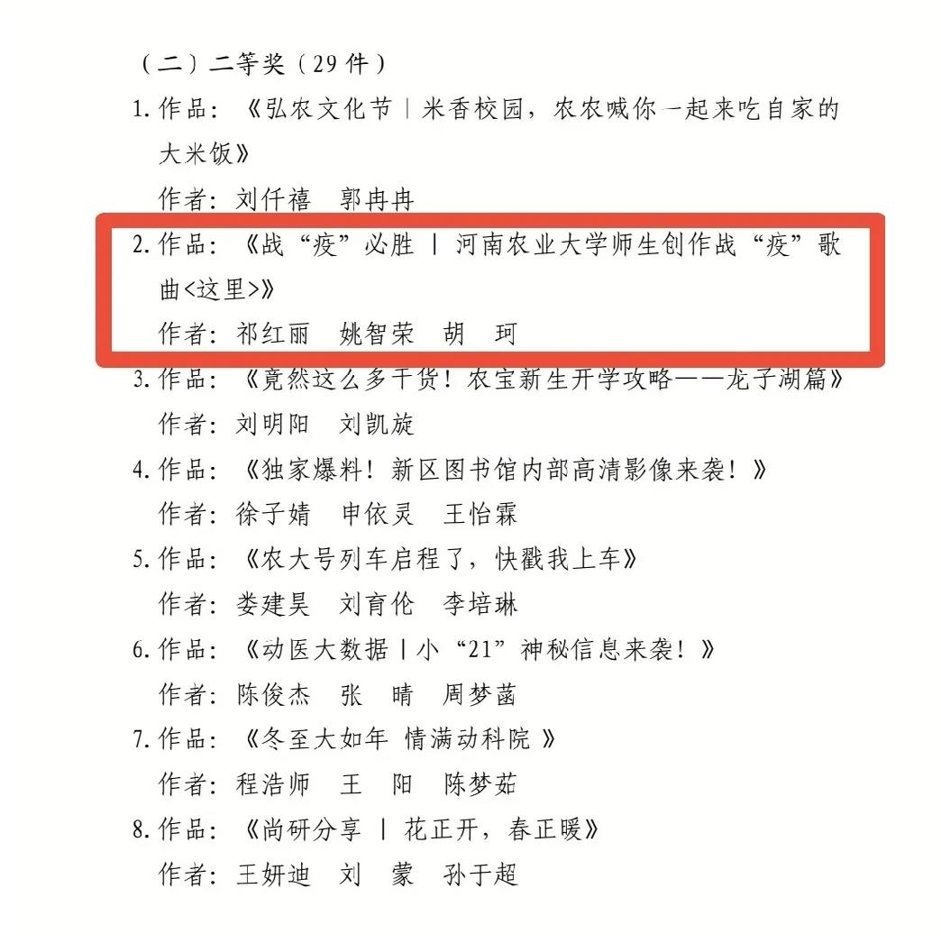 师生创作战“疫”歌曲<这里>》荣获二等奖,崔梦祥等人作品《“党员党史微视频”系列微信》荣获三等奖。