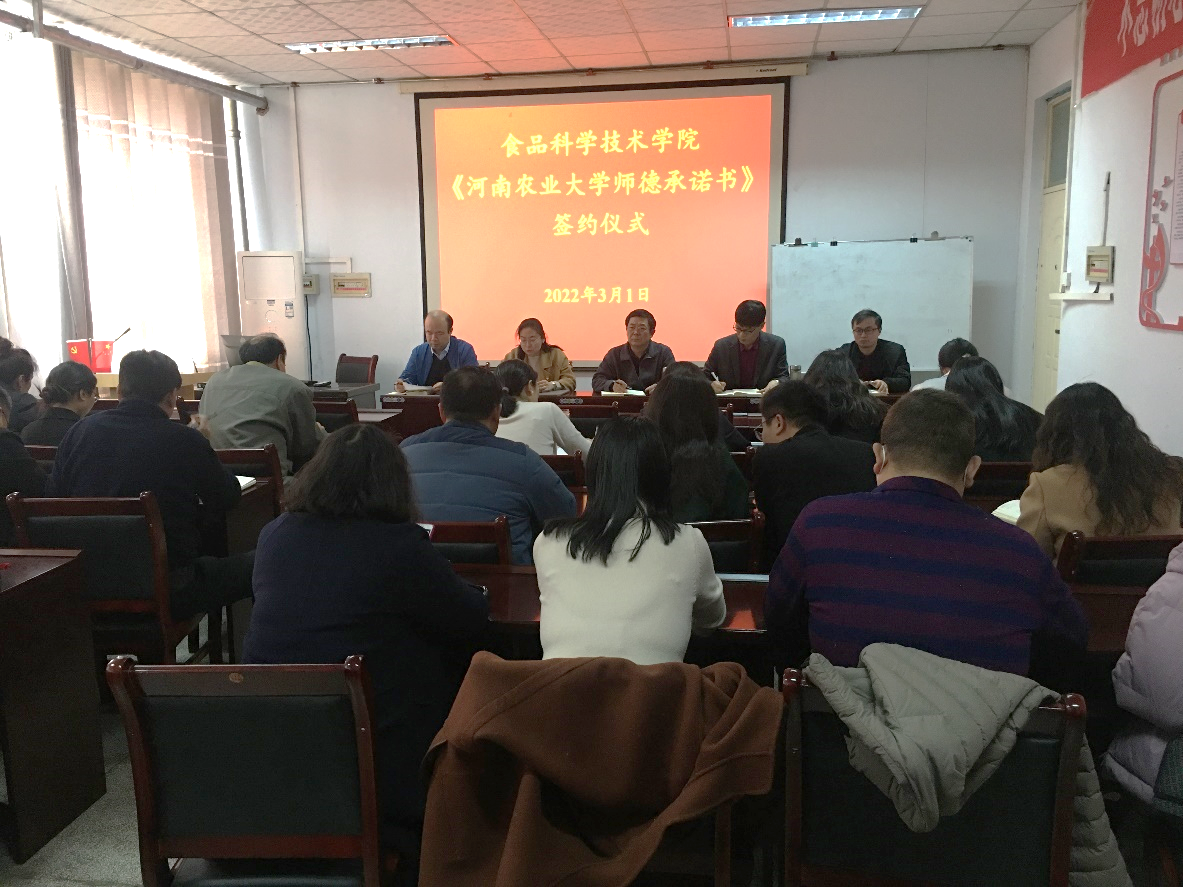 会上,副院长张剑主持举行了《澳门银河App 师德师风承诺书》签约仪式。院党委书记赵改名介绍了新进的三位博士海丹、王世琼、杨勇,并对他们表示了欢迎。院长黄现青向大家介绍了学科评估、国家自然科学基金申报等各项工作,并传达了调整人才工作会议精神,同时要求澳门银河App 各级做好教工、学生疫情防控相关工作。副书记李蓓蓓介绍了澳门银河App 疫情防控、学生校园安全、毕业生考研就业以及教职工“三八女神节”等相关工作的安排。副院长谢新华对澳门银河App 各实验室安全问题等工作进行了安排部署。