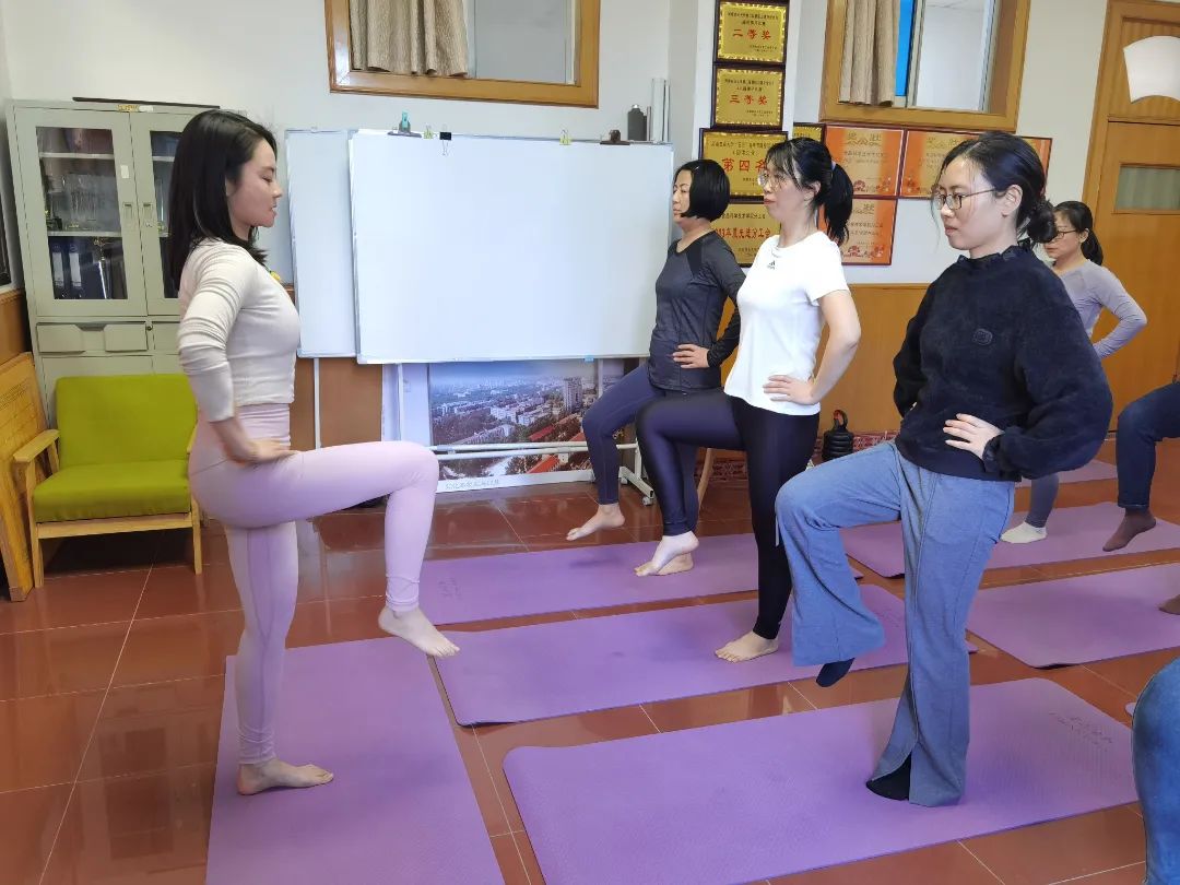 瑜伽是一项修养身心,使身体、心灵与精神和谐统一的运动方式。在王萌萌的亲身示范和耐心指导下,大家积极地讨论动作要领,配合呼吸舒展身心,努力将动作做到完美。现场气氛轻松活跃,在相互鼓励、彼此勉励的同时,大家共同享受着紧张工作之余的放松与惬意。女教职工们纷纷表示,本次活动能够帮助其舒展身心,缓解压力,增强锻炼意识,使自身能够以更加饱满的热情、更健康的身体投入到生活与工作中去。