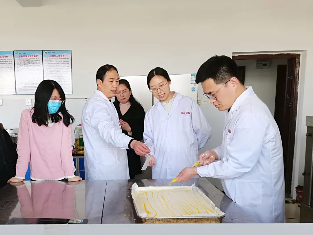 于推广楼七楼食品工艺学实验室开展教职工制作蛋糕活动,全体教职工参加。
