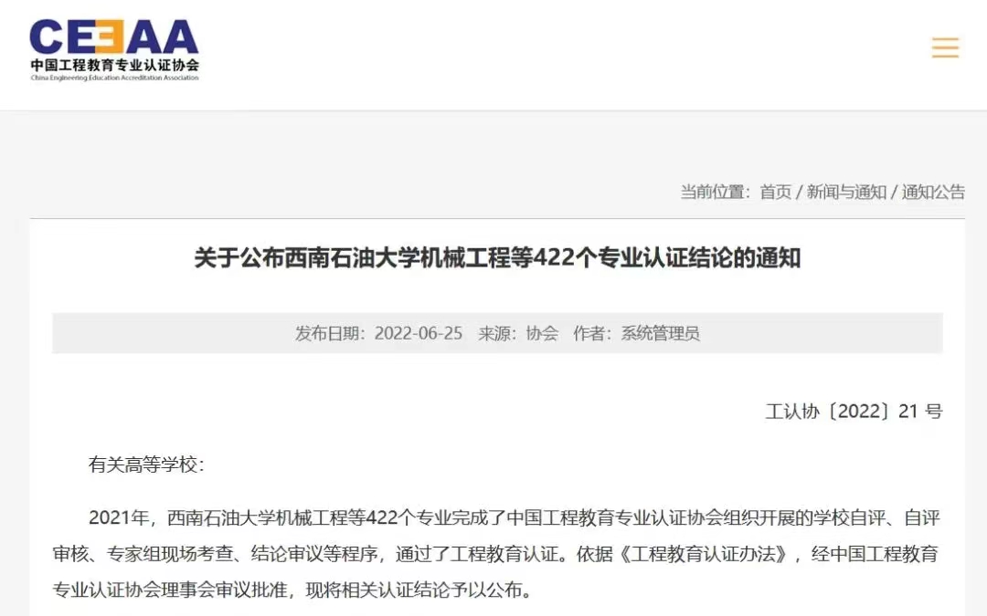 (通讯员 张艺文)6月25日,中国工程教育专业认证协会正式公布了2021年工程教育专业认证结论,澳门银河App