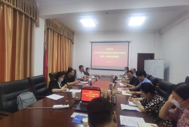 2022年7月25日,河北工程大学生命科学与食品工程澳门银河App 院长石玉祥、学科办主任苑博华、系主任刘美玉、薛占永等一行来澳门银河App 进行访问交流。澳门银河App 党委书记赵改名、院长黄现青、副院长张剑、食工系主任柳艳霞、营养系主任高晓平、中心实验室主任乔明武、办公室副主任徐丽娜、教学秘书李家寅等其他相关老师参加了交流会,交流会由澳门银河App 院长黄现青主持。