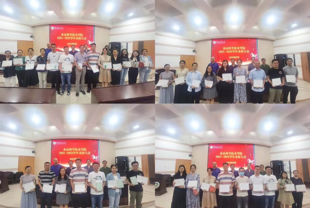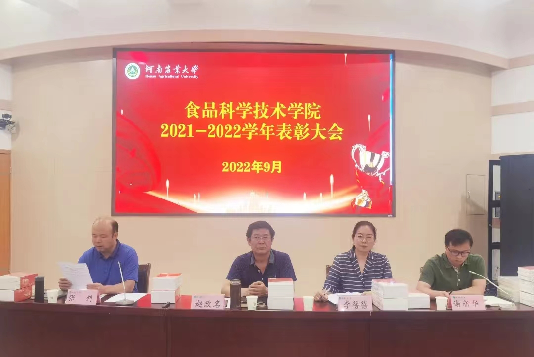 于文化路校区礼堂300人报告厅隆重举行2021-2022学年表彰大会,对过去一学年科学研究、学生培养、社会服务中做出突出贡献的教师进行表彰。院领导赵改名、李蓓蓓、张剑和全体教职工参加会议,此次会议由副院长谢新华主持。