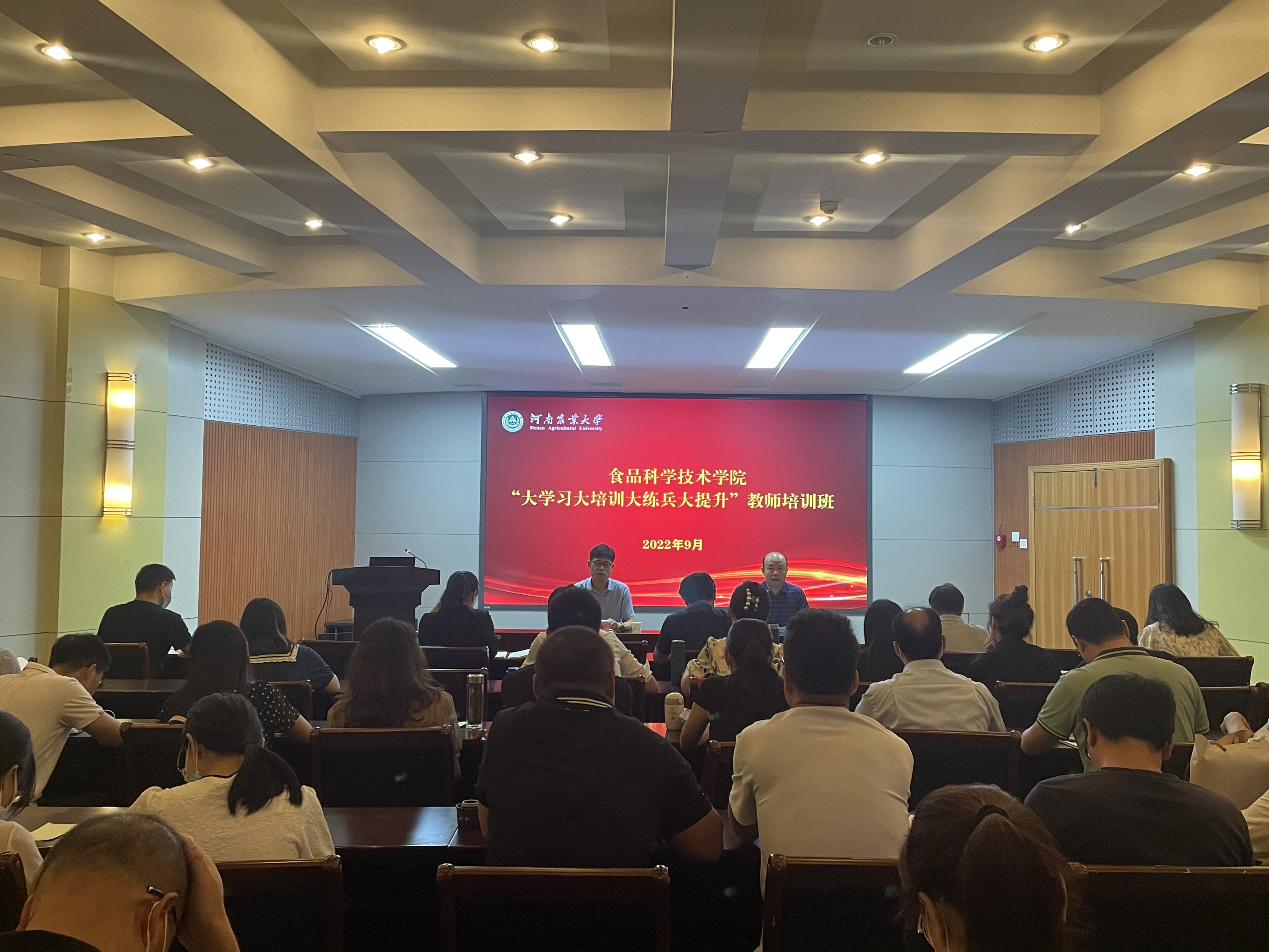 9月8日上午,培训班开班典礼在文化路校区大礼堂100报告厅举行,开班典礼由副院长张剑主持。在开班典礼上,院长黄现青以《如何做一名优秀的大学教师》为题做首场辅导报告,从“有理想信念、有道德情操、有扎实学识、有仁爱之心、新时代食品教育者的使命与担当”五个方面进行讲解。黄院长强调,一要,理想信念是师德之魂,要树立正确的“三观”。二要,道德情操是师德之根,包括社会公德、职业道德、家庭美德。三要,扎实学识是师德之基,扎实的知识功底、过硬的教学能力、勤勉的教学态度、科学的教学方法是教师的基本素质。好老师应具备精深的学科知识、灵活的教育教学知识以及广博的文化知识。四要,仁爱之心是师德之源。五要,食品人的使命就是要培养科技人才、阐释食品科学、研发食品技术、开发新型产品等,通过政治素养,职业道德,具备的能力来更好的践行。并分别讲述了张伯礼、黄大年、吴孟超、张桂梅四位时代楷模的故事,号召全体教师向这些榜样学习,牢记初心使命,坚持立德树人,做食品学子成长成才的“筑梦人”“系扣人”和“引路人”。