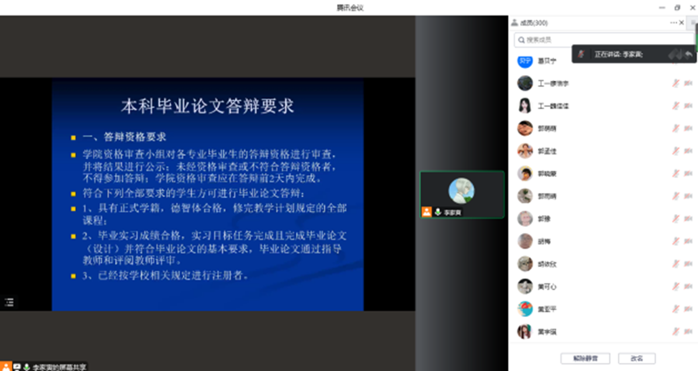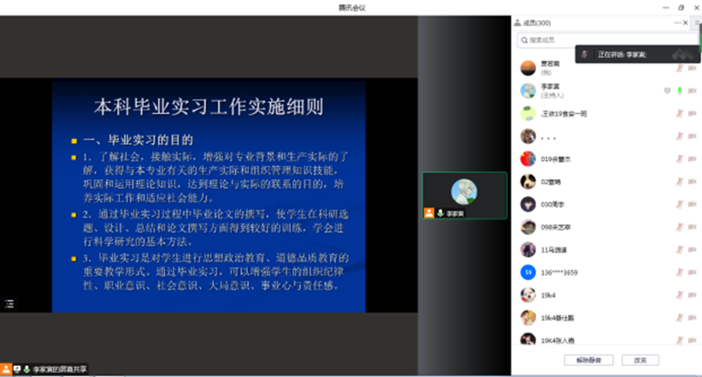 本科毕业论文(设计)工作实施细则》对2023届本科毕业实习和本科毕业论文答辩的具体要求进行讲解,并对毕业答辩程序、需上交材料等进行了严格要求。此外,李家寅向同学们讲解了澳门银河App