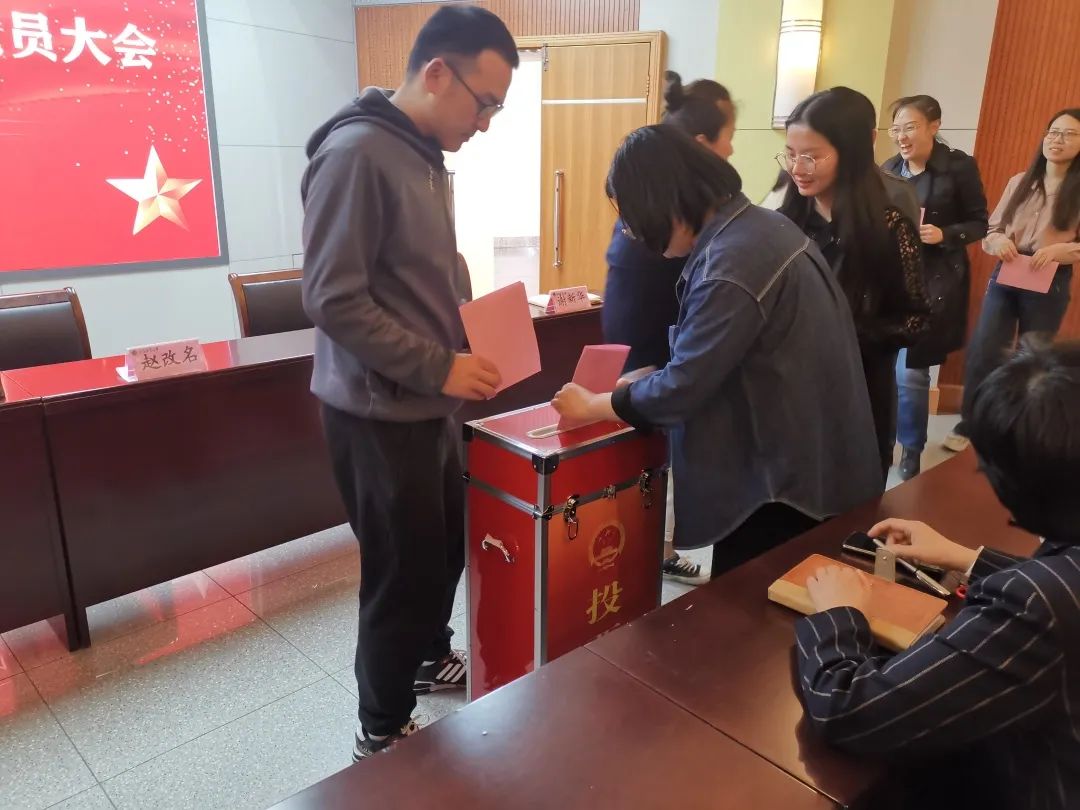 两个会场各党员们有序排队进行投票,监票人、计票人对选票进行清点,并公布投票结果,张剑同志、高晓平同志补选为党委委员。最终,产生了由赵改名、黄现青、李蓓蓓、张剑、谢新华、路平、高晓平7位同志构成的澳门银河App