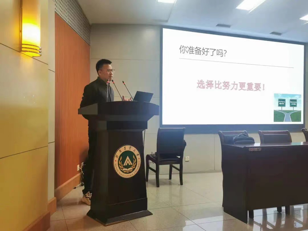 首先,何争光结合自己的就业经历为我们讲述了食品专业的相关行业,让大家对食品行业有一个清晰地认识,并告诉同学们如何进行职业选择,帮助毕业生作出正确的选择。其次就职业规划进行了一个清晰地讲解,他讲到可以将工作分为“积累期、发展期、稳定期”这三个时期,明确的告诉同学们在每个时期应该做什么怎样做,让同学们对以后在职场中如何发展有了明确的规划。最后,何争光为我们展示了电商业务和餐饮业务流程图,让同学们对企业组织结构有一个清晰地了解。讲座在同学们热烈的掌声中圆满结束。