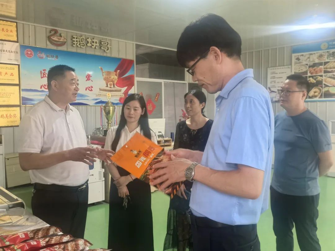 一行参观了观了产品展示柜、固始鹅块的原料车间、加工车间、贮藏车间,以及面点生产的原料贮藏、加工、包装等车间,期间,双方就食品加工过程中关键控制点进行了交流,并探讨了关键生产环节的核心技术需求和关键岗位的人员素养要求,临摹了所需人才的技能肖像,为专门人才的引进和就业夯实了基础。