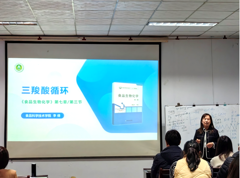 李倩老师通过现场展示《食品生物化学》课程“三羧酸循环”的模拟授课,从课程概述、学情分析、教学创新、教学目标、教学设计、教学评价等方面向大家示范了说课教学以及课程的讲授。为新进教师们提供了宝贵的教学经验和借鉴。