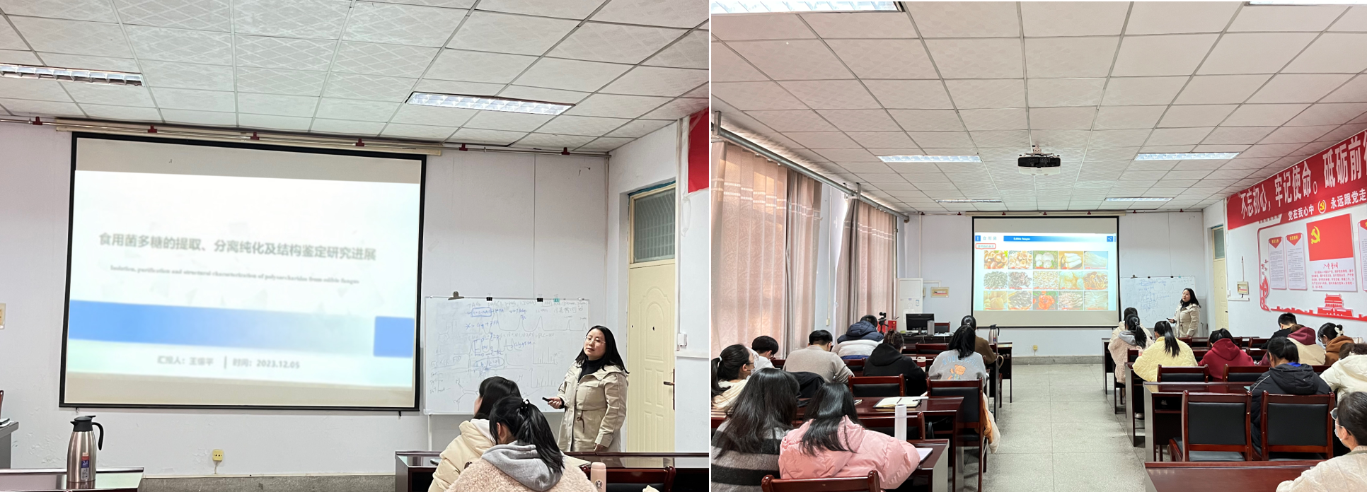 王银平博士向在场研究生讲解了食用菌多糖的提取、分离纯化及结构鉴定研究进展。进一步加深了同学们对于食用菌多糖功能的了解。