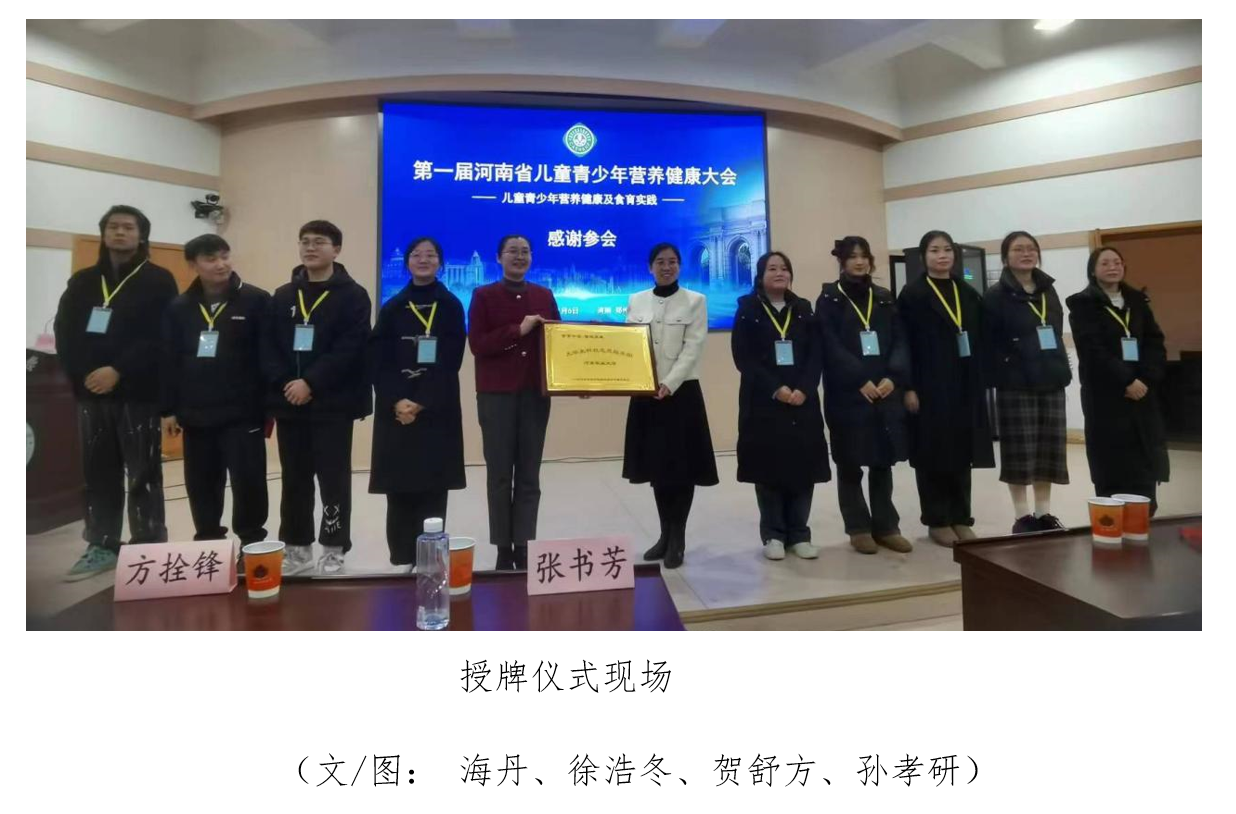 授予食育中原 豫健未来“大学生科技志愿者服务团”牌子,预祝后续“校园营养万里行—河南站”相应工作能够科学、有效和可持续开展,并鼓励澳门银河App