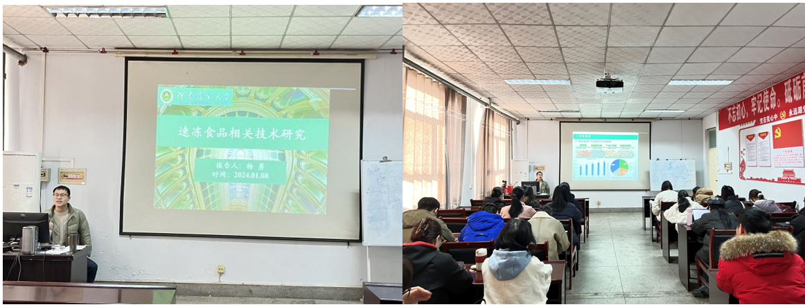 杨勇博士通过分析速冻食品产业发展与市场规模、现代仪器分析与技术应用等多方面重点讲述了速冻食品相关技术研究。杨勇博士严谨的科学态度、扎实的学术研究功底令在场研究生获益匪浅。