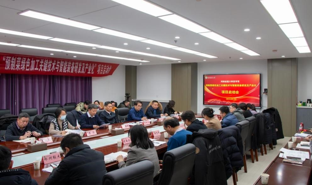 黄忠民教授主持的河南省重大科技专项“预制菜绿色加工关键技术与智能装备研发及产业化”项目启动会在龙子湖校区召开。副校长刘晓永,科技厅农业农村科技处处长李锦辉,郑州市科技局农村科技处处长李凯出席会议。郑州轻工业大学食品澳门银河App