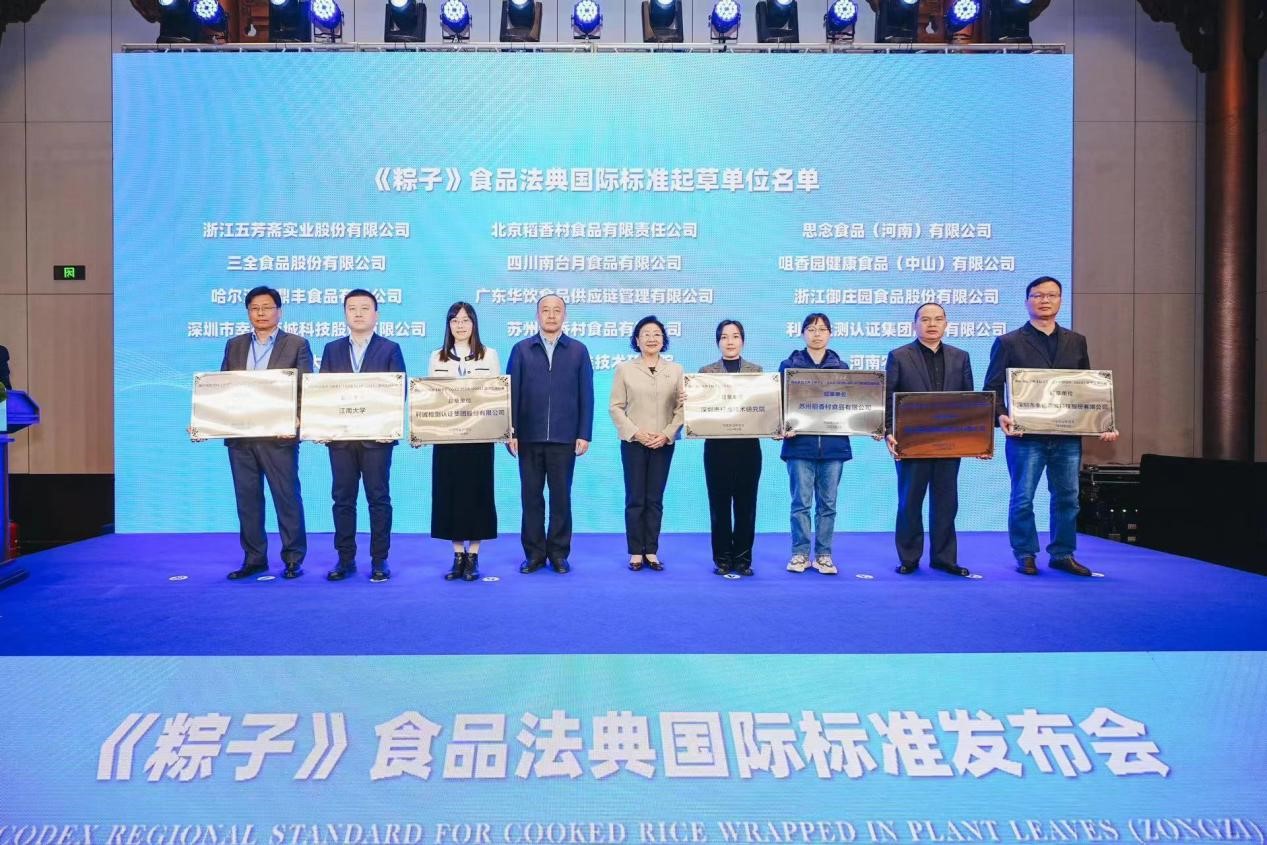 《粽子》食品法典国际标准是我国在国际食品法典委员会(CAC)提出并主导组织制定的中国传统食品国际标准,于2023年12月在联合国粮农组织和世界卫生组织共同举办的国际食品法典委员会第46届会议上正式获批发布,标准代号为CXS 355R-2023。商务部流通业发展司副司长赵涛、国家食品安全评估中心副主任樊永祥、农业农村部农产品质量安全中心总农艺师孔巍、中国商业联合会副会长张丽君等有关领导以及来自五芳斋、北京稻香村、哈尔滨老鼎丰、思念食品、三全食品等企业及澳门银河App 、江南大学起草单位的代表参加了本次发布会,澳门银河App 二级教授、中国食品工业协会粽子行业委员会专家委员黄忠民全程参与了该项国际标准的起草工作并共同见证全球首个中国传统节令食品国际标准的发布。