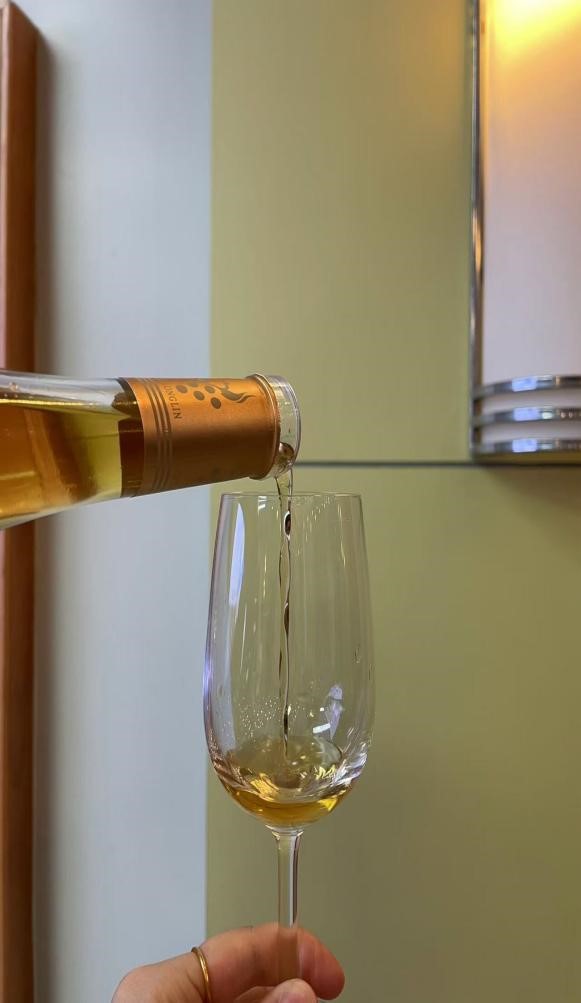 本次葡萄酒校园公开课酒款为来自张裕冰酒酒庄的黄金冰谷和贵馥晚采甜白、三合酒业的蔡龙麟、通化葡萄酒公司的红梅盛世甜红和集安市鸭江谷酒庄的北冰红冰酒,同学们感受到冰酒具有蜜桃、菠萝、芒果等热带水果的香气,甜度与酸度达到良好的平衡,有着细腻的质感,口感上展现出饱满的酒体与细腻的单宁。