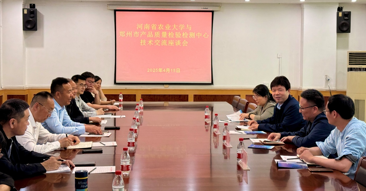 副院长张剑、食品科学与工程系系主任柳艳霞、国家米面制品加工技术专业研发中心副主任潘治利教授及教学秘书李家寅赴郑州市产品质量检验检测中心开展交流座谈。郑州市产品质量检验检测中心党委书记段祥生及相关职能部门负责人出席座谈,双方围绕科研协同创新、人才实践培养、毕业生就业合作等议题展开深入探讨,达成多项合作共识。