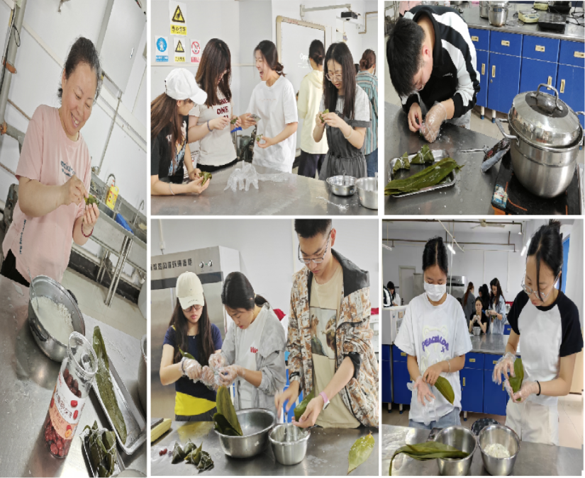 随后,在老师的示范下,同学们纷纷动手,从准备糯米、粽叶等材料开始,一步步学习包粽子的技巧。折粽叶、填糯米、放馅料、裹紧扎绳,每一个步骤都凝聚着学生们的认真与努力。经过一番努力,一个个形状各异、香气扑鼻的粽子在学生们的手中诞生,现场洋溢着浓浓的节日氛围。