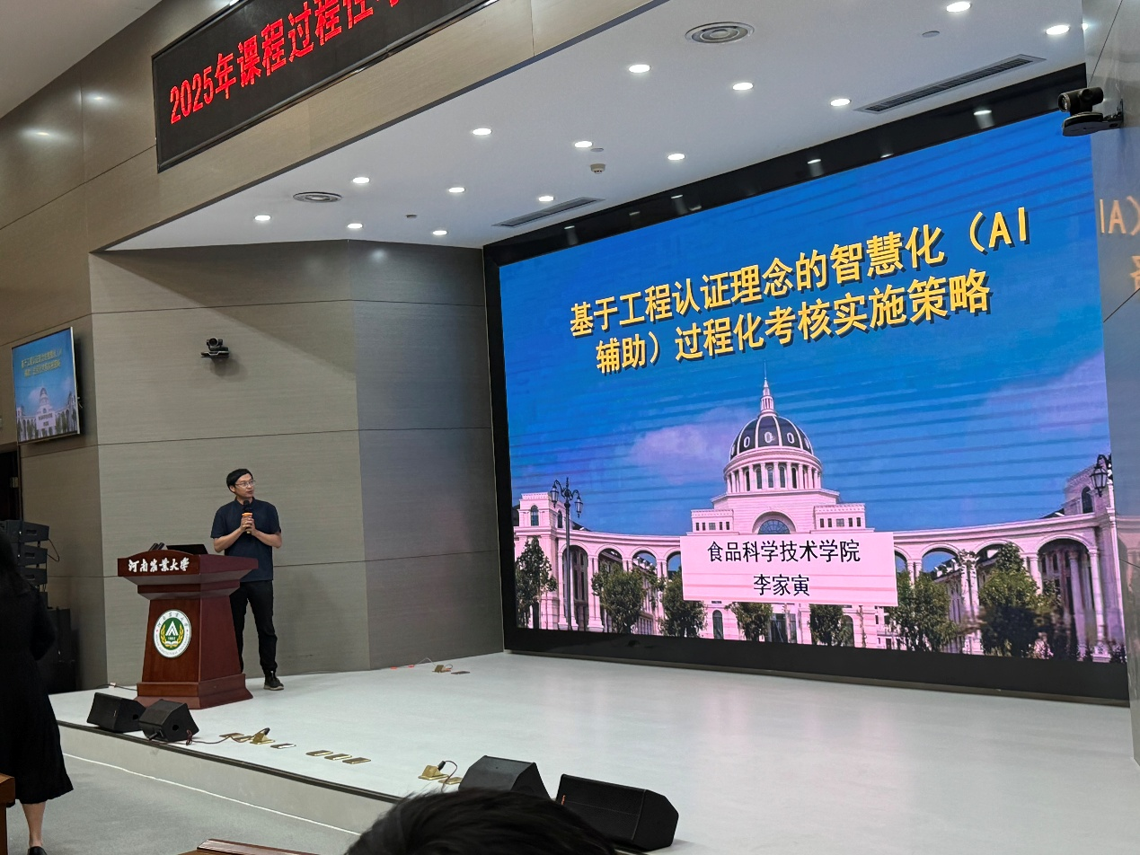 李家寅老师作《基于工程认证理念的智慧化(AI辅助)过程化考核实施策略》的专题报告。他结合主讲的《食品机械与设备》课程,系统阐释了如何将工程教育认证“OBE”理念融入过程性考核改革,并详细展示了如何应用AI工具辅助教师进行过程性评价,通过智能化工具分析考核数据,精准识别教学薄弱环节,实现“以评促教、以评促学”的闭环优化。其汇报内容逻辑清晰、案例详实,为跨学科课程考核改革提供了可复制的实践路径,受到与会专家和教师的高度关注。此外,林澳门银河App