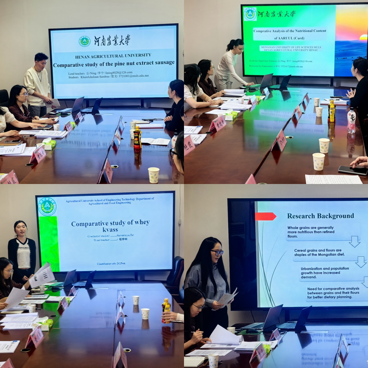 答辩会伊始,黄现青院长发表致辞。他对四位远赴中国留学、刻苦钻研学业的蒙古学生给予了充分肯定与高度评价。他表示,四位同学不仅展现了良好的专业素养和研究能力,也在这一年的学习生活中充分感受到中国文化的多元与包容。希望他们在返回蒙古后,能够将所学所得转化为推动本国食品科学发展的动力,做到知行合一。同时,他也鼓励他们作为榜样,引导更多蒙古学子来华学习交流,为中蒙高校的深度合作搭建桥梁,为“一带一路”倡议的推进贡献青春力量。