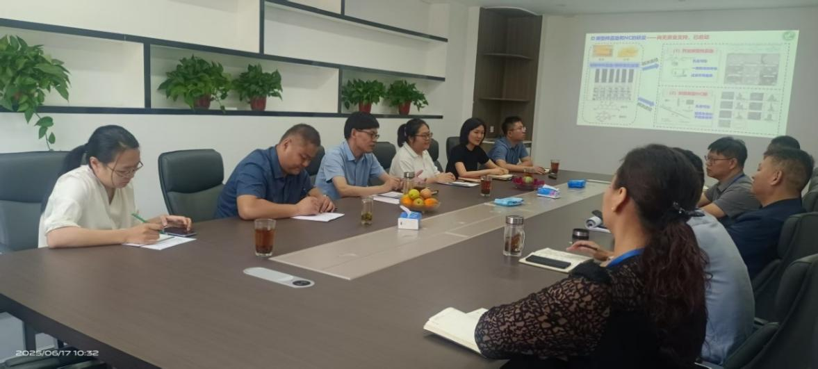 毛烨炫副教授介绍了食品营养与安全团队基本情况及最新科研成果,包括新型样本提取试剂开发、抗体库构建及新型标记材料合成三个方面。黄现青教授一行与公司相关技术负责人,针对如何提高快速检测准确性及降低检测成本等问题进行了深入交流。