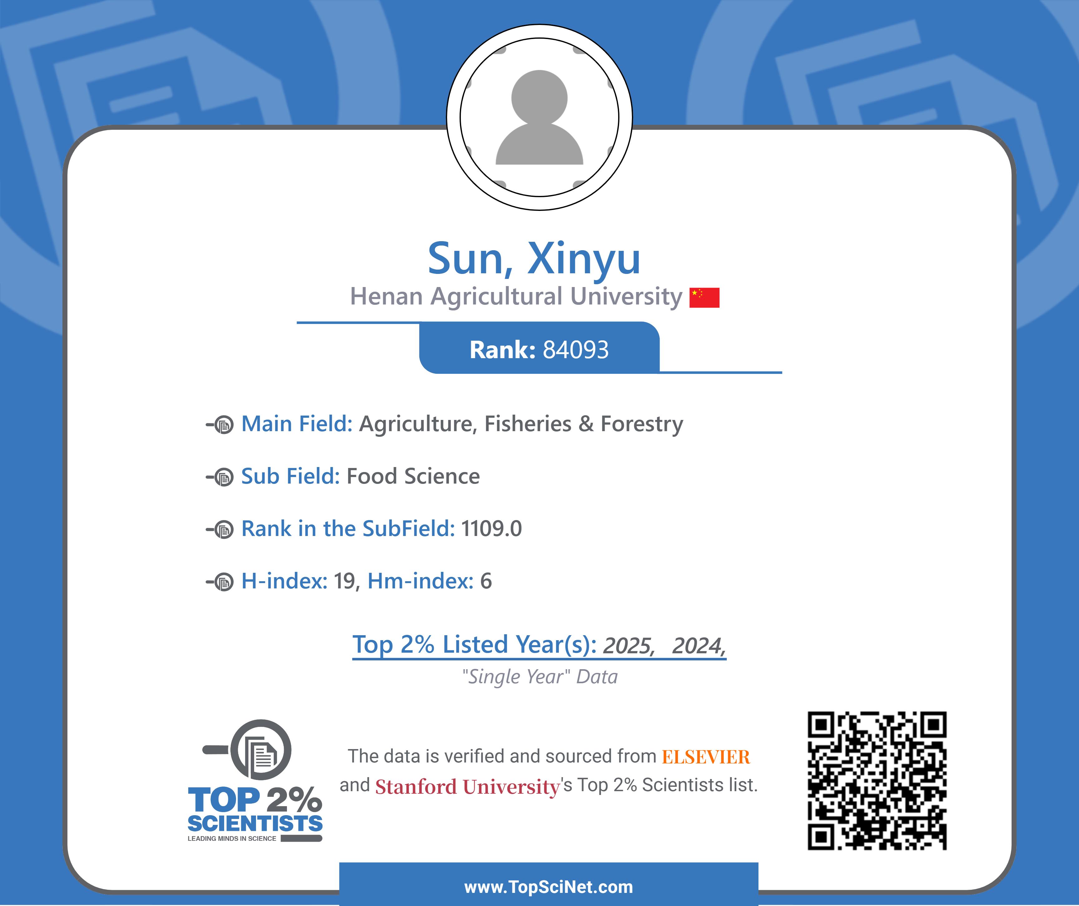孙新玉博士入选食品科学领域全球前2%顶尖科学家榜单,反映了澳门银河App