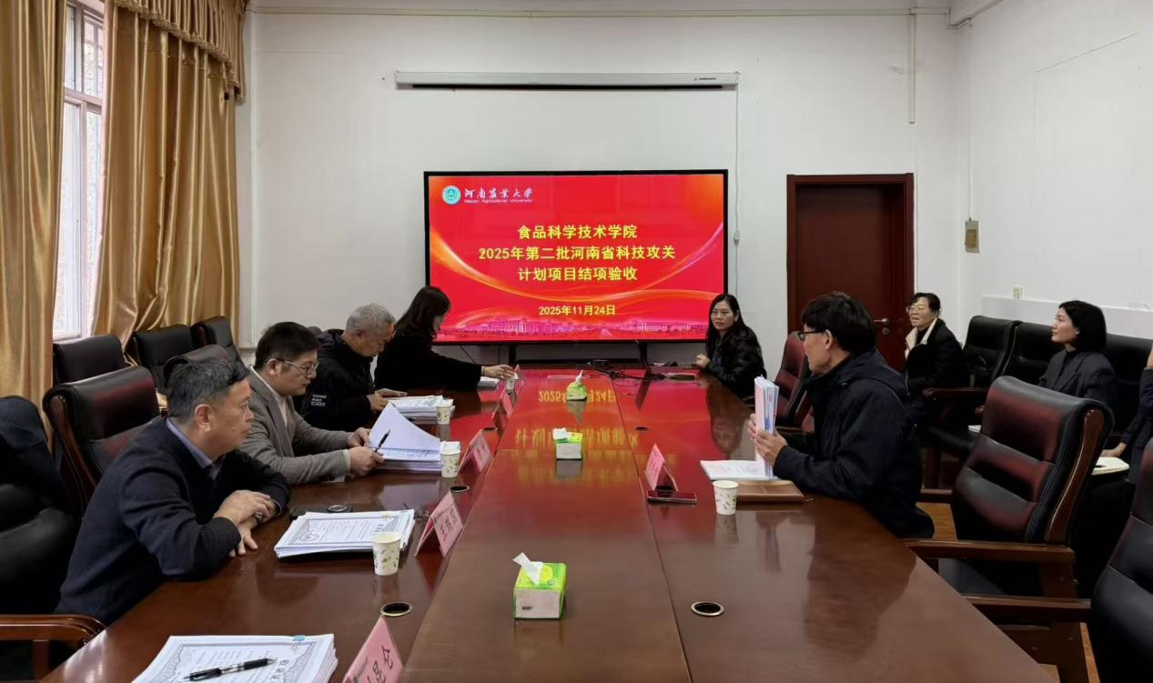 在13号楼309会议室召开2025年第二批科技攻关计划项目及校特殊创新基金项目结项验收会。会议邀请华中农业大学李斌教授、河南省农科院张勋研究员、河南省食品工业科学研究所王瑞国教授级高工、河南牧业经济澳门银河App