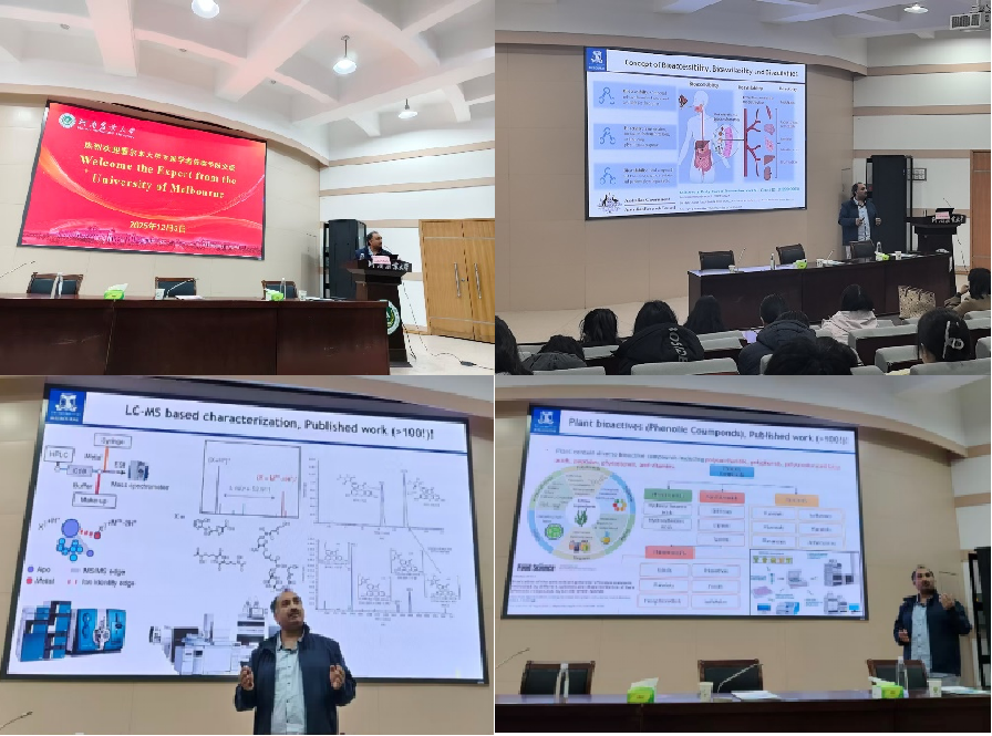 此外,他还介绍了墨尔本大学本科生和研究生招生政策、培养模式、奖学金申请等相关情况,鼓励和欢迎澳门银河App 学生积极申请相关交流项目和学习深造。报告内容精彩充实、案例分析生动,激起了在场师生的浓厚兴趣。在互动环节,师生们师生围绕功能性食品的开发与产业化应用等问题与专家展开了深入探讨。在场学生对墨尔本大学的入学条件、培养模式及奖学金制度表达了浓厚兴趣,并与专家进行了详细咨询,希望今后能继续保持联系与沟通。