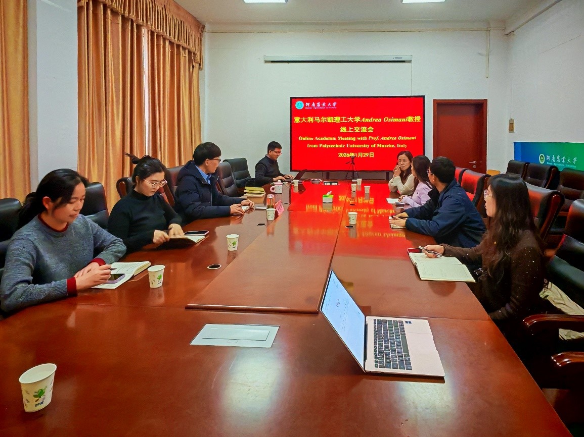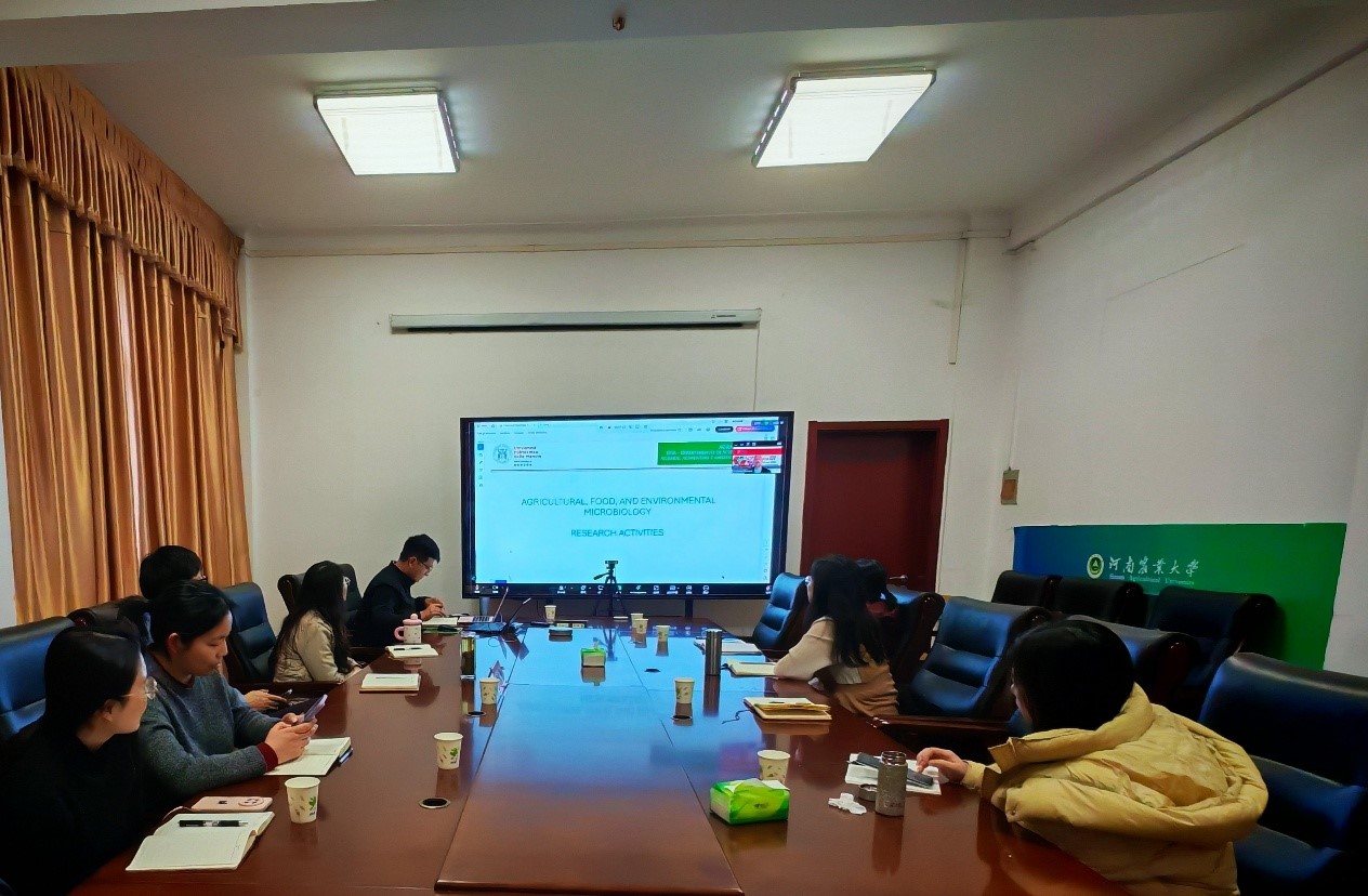 院长黄现青、李宁教授等8位教师代表与意大利帕尔马大学Andrea Osimani教授在线上开展科研交流会。双方围绕食品安全、发酵科研等领域展开了深入讨论与学术分享。
