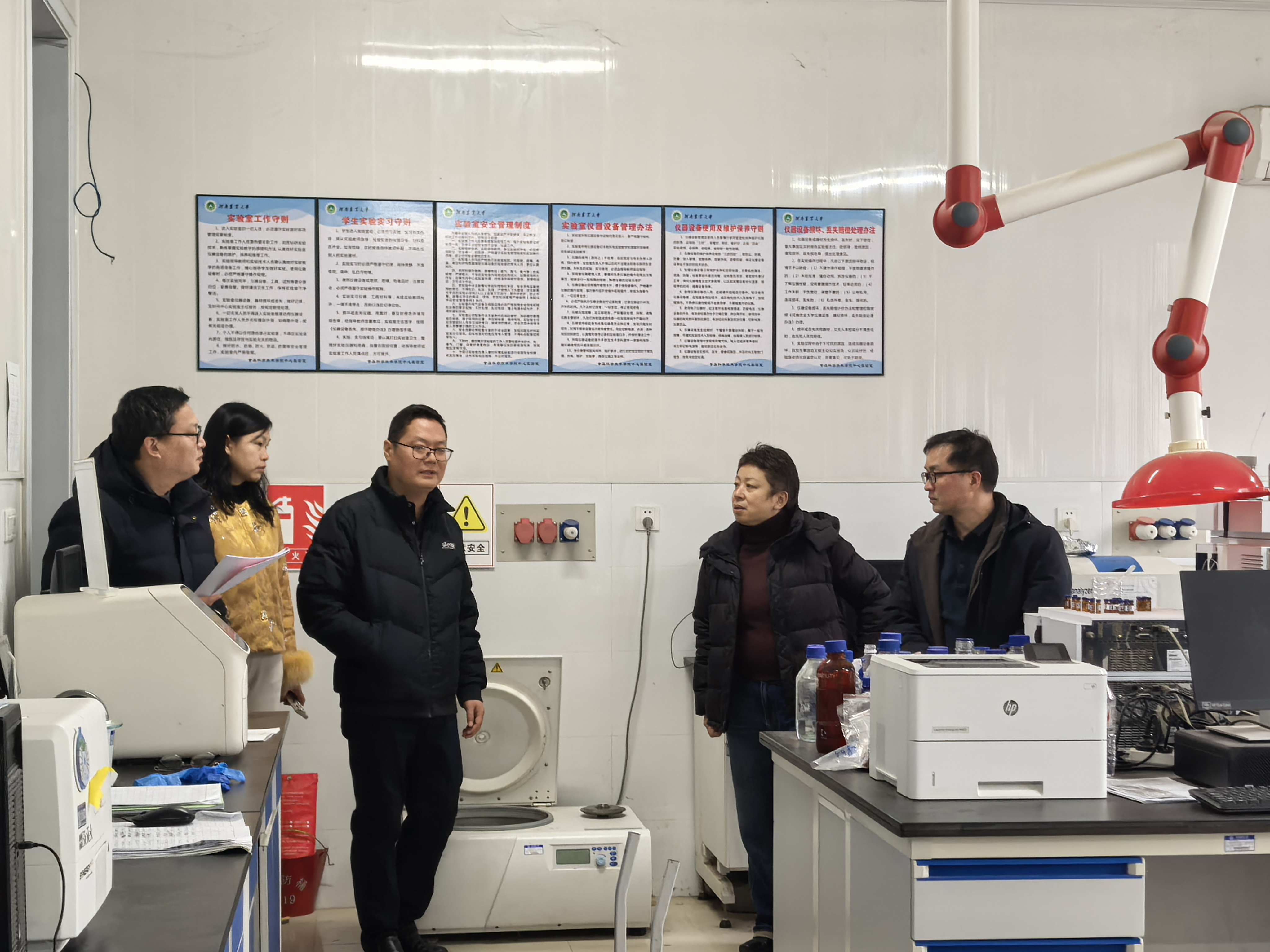 在实验室,院领导重点检查了消防设施配备、危化品管理及仪器设备运行及使用记录情况,仔细查看灭火器、消防栓等是否完好有效。吴旭静强调,要时刻绷紧消防安全这根弦,坚决杜绝麻痹思想,严格落实实验室安全管理各项规定,全力保障新学期教学科研工作安全有序开展。